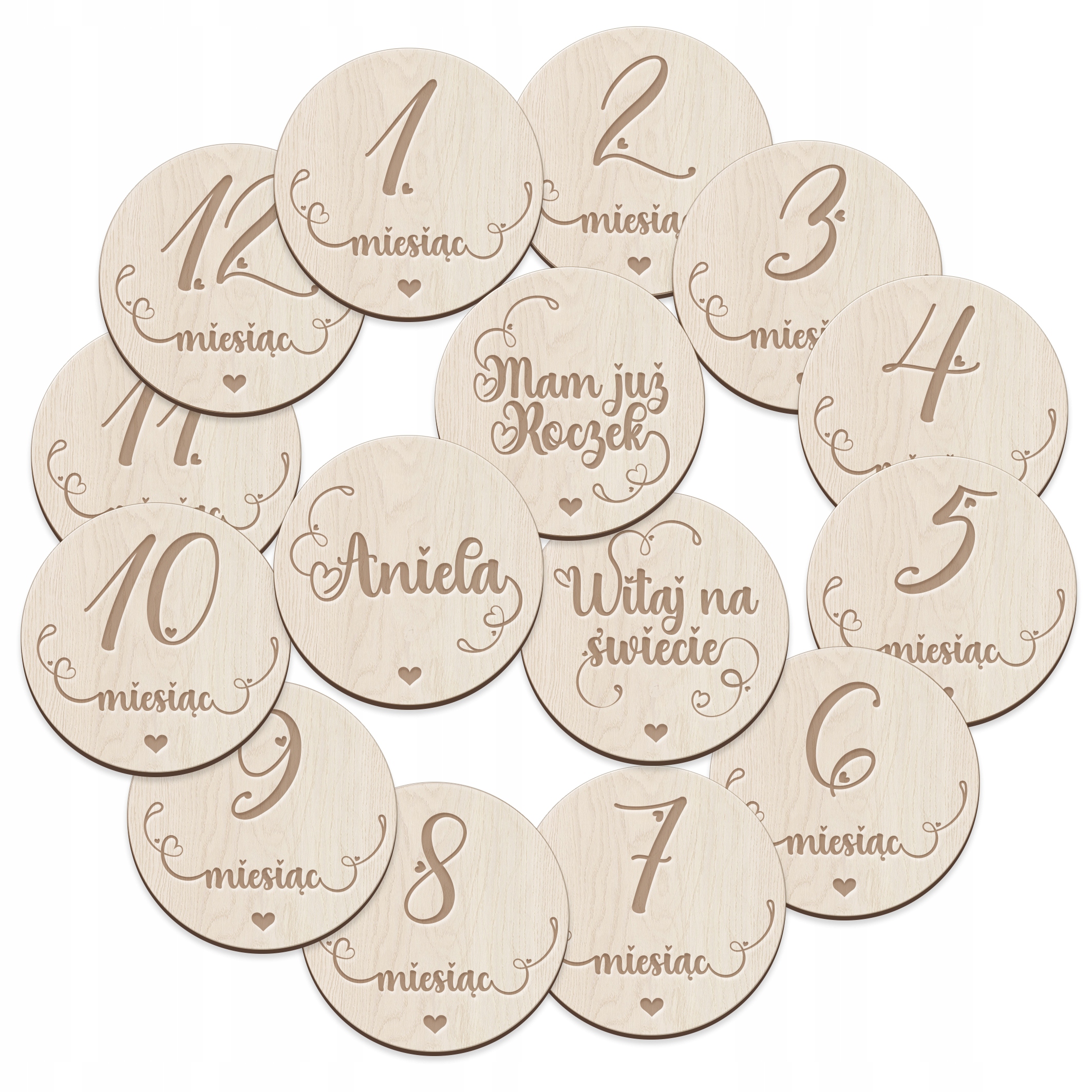 Элегантные деревянные доски для фотографий, документирующих первый год жизни ребенка. Таблицы, изготовленные методом резки и лазерной гравировки, с ручной.