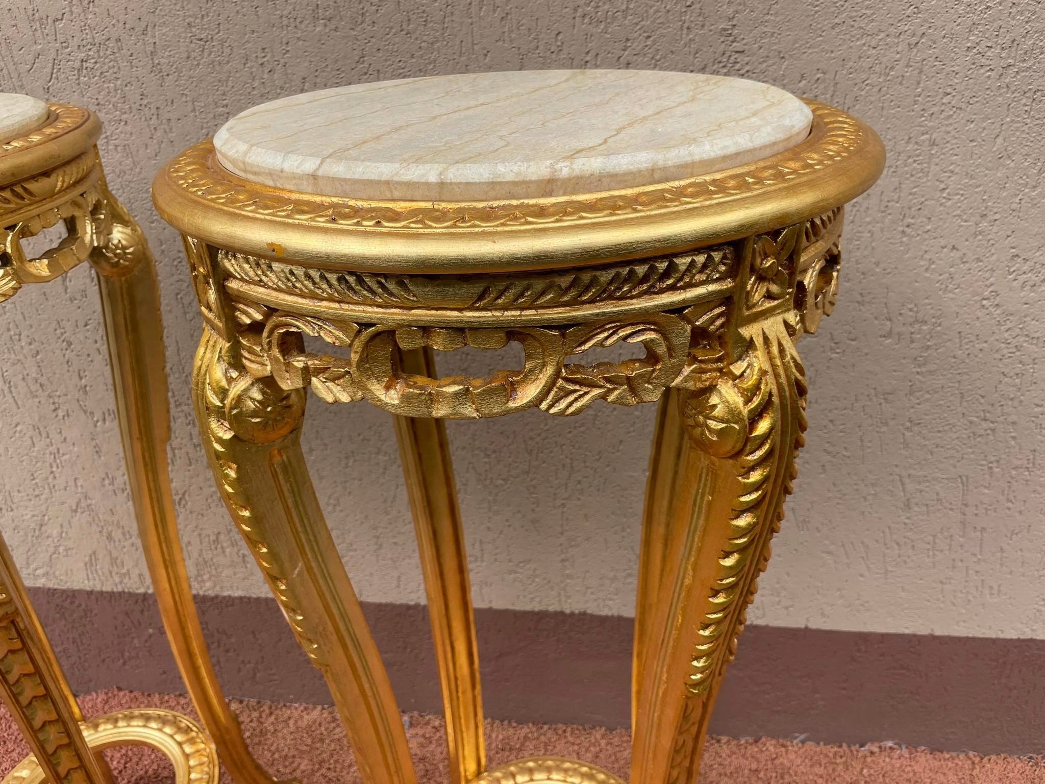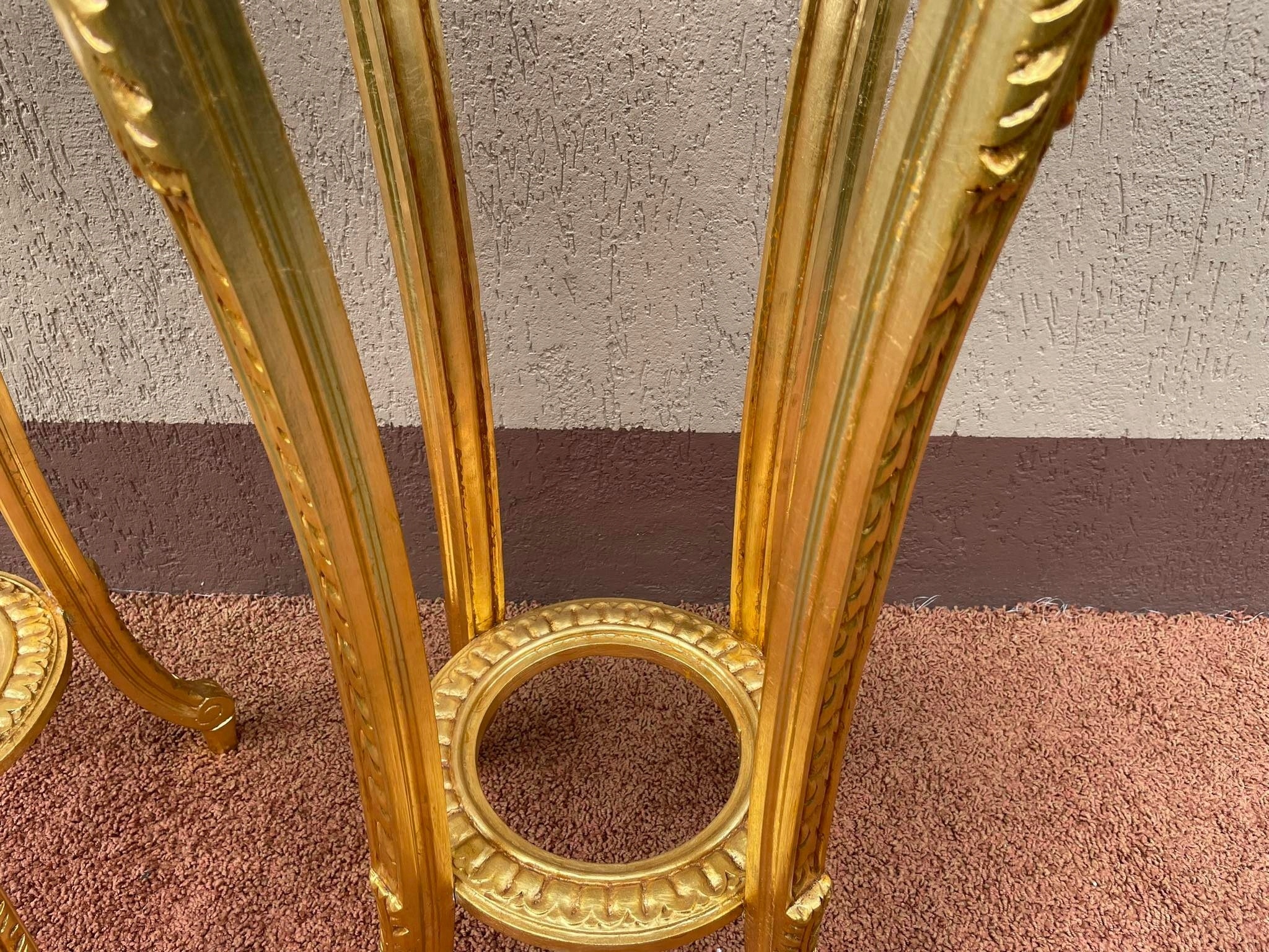 Деревянные золотые столы с мраморными клумбами