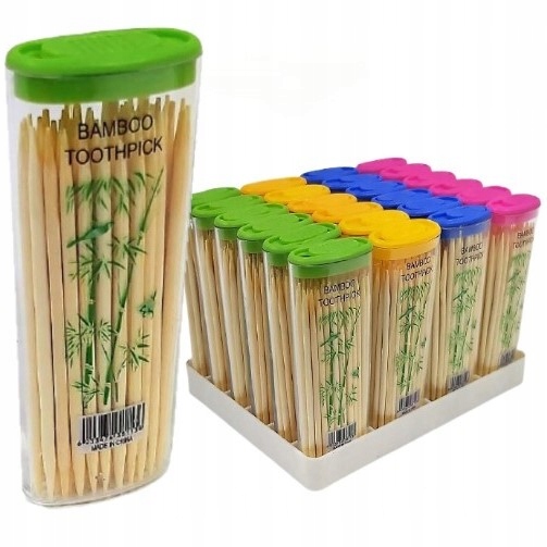 Зубочистки из бамбука в практичной пластиковой коробочке. Контейнер имееткрышку, позволяющуюдозировать съемные зубочистки.