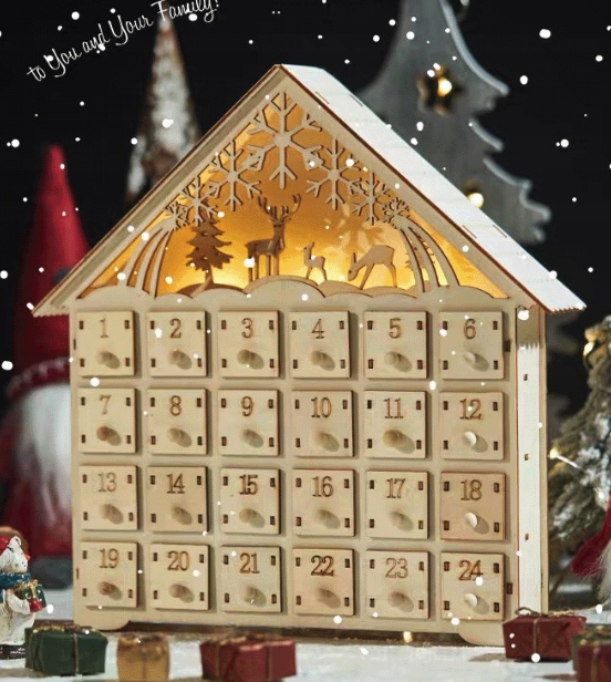 ДЕРЕВЯННЫЙ АДВЕНТ-КАЛЕНДАРЬ СВЕТОДИОДНЫЙ ДОМ ПОДАРОК