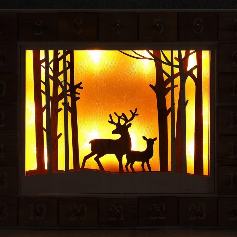ДЕРЕВЯННЫЙ АДВЕНТ-КАЛЕНДАРЬ СО СВЕТОДИОДНЫМ ПЕЙЗАЖЕМ