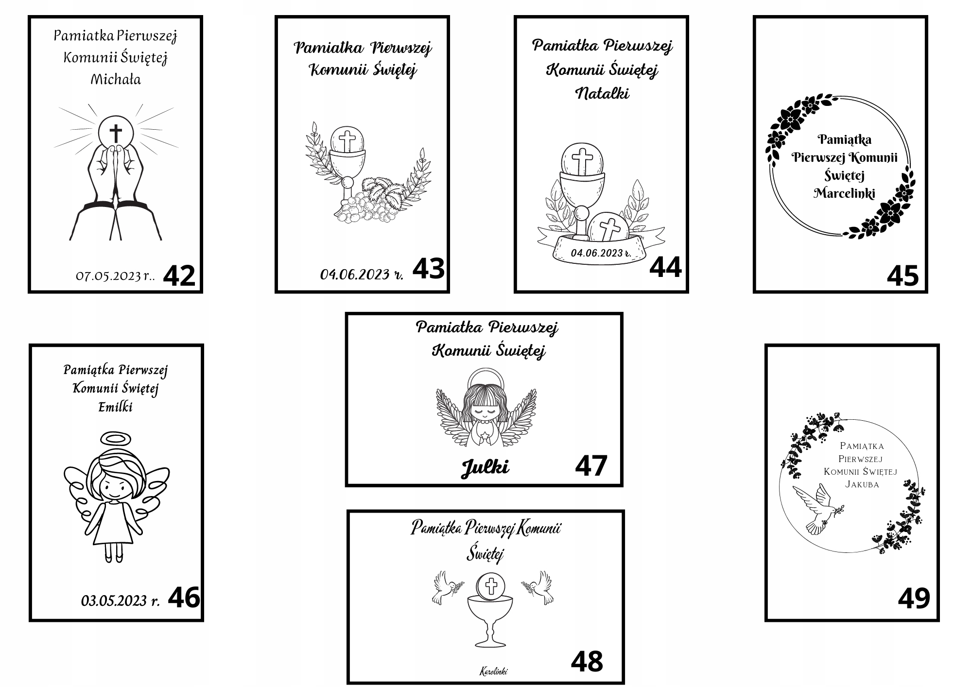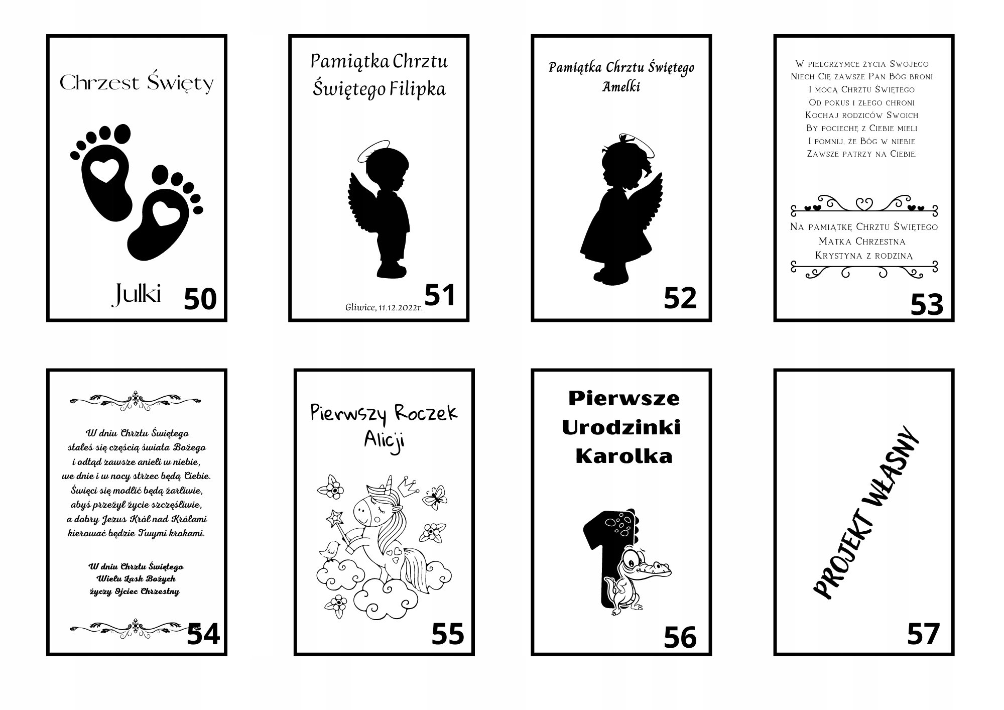 Вы можете выбрать готовый дизайн (персонализация имени, фамилии и любое редактирование текста).