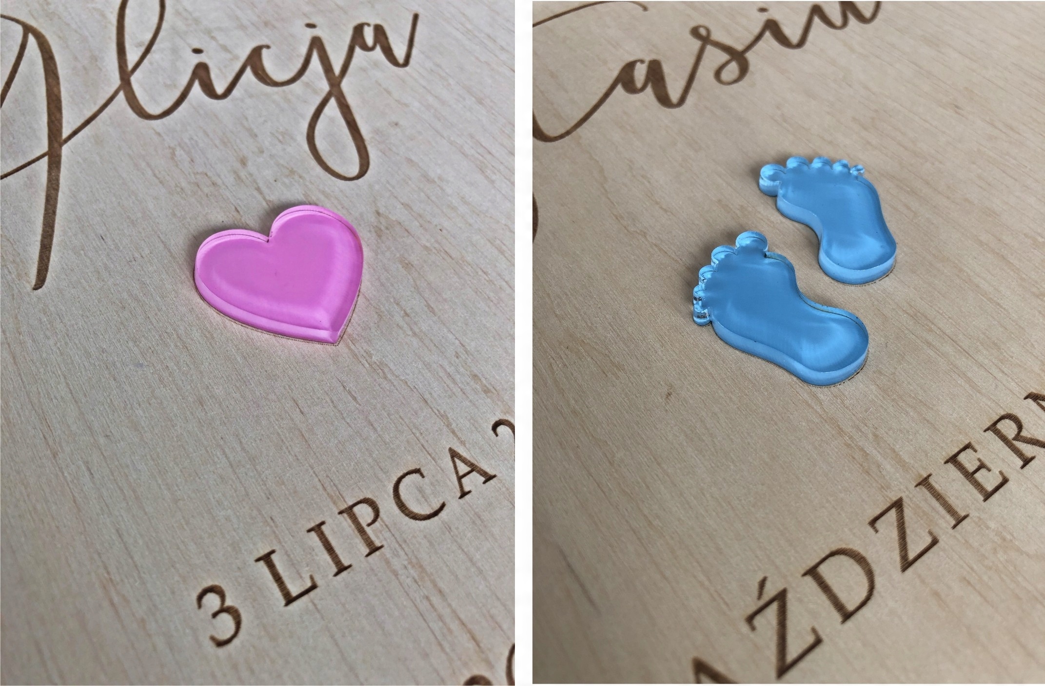 - с сердечком (розовым или голубым)