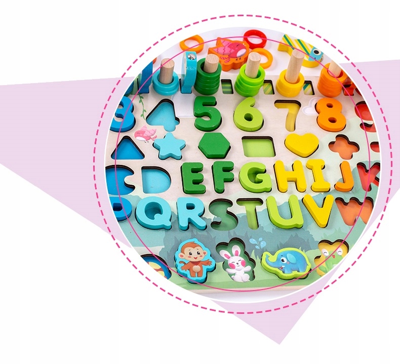 Играя, ребенок учится различать формы, цвета и буквы b>, цифры изучает характеристики отдельных фигур и развивает логическое мышление. Дополнительно дополнен блоками с животными.