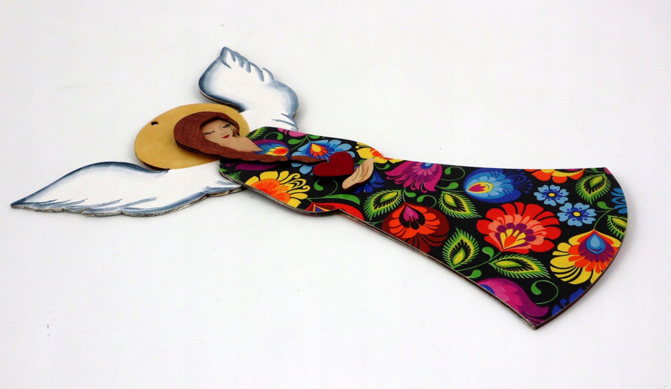 Представляем очаровательного ангелочка с нежными чертами лица, украшенного методом декупажа цветочным мотивом, отсылающим к фольклору Ловича. Нежное лицо и красивый цветочный мотив в оттенках сделают его неповторимым украшением вашего интерьера.
