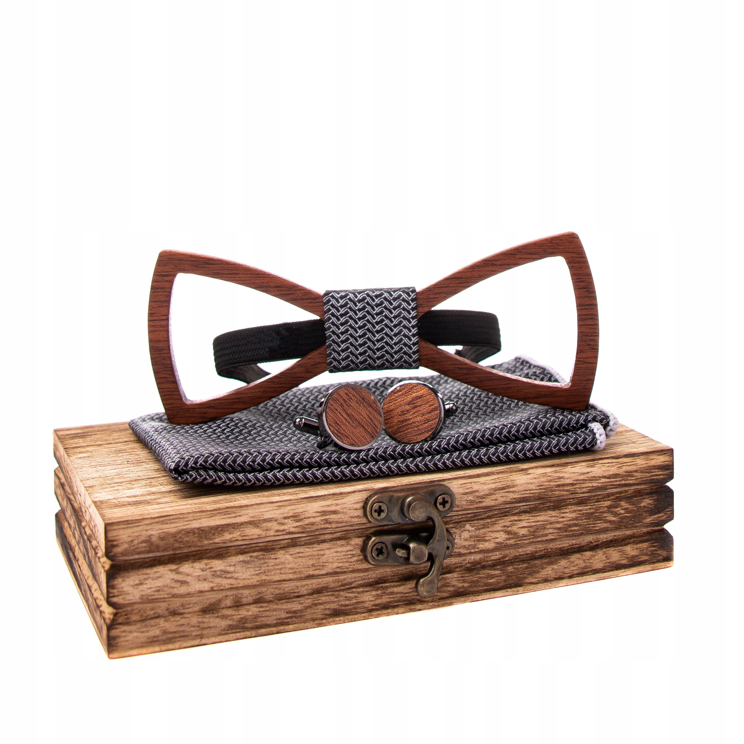 ДЕРЕВ'ЯНИЙ БАНТ СІРИЙ КИШЕНЬ КВАДРАТ Запонки НАБІР ДО КОСТЮМА МОДНИЙ ПОДАРУНОК