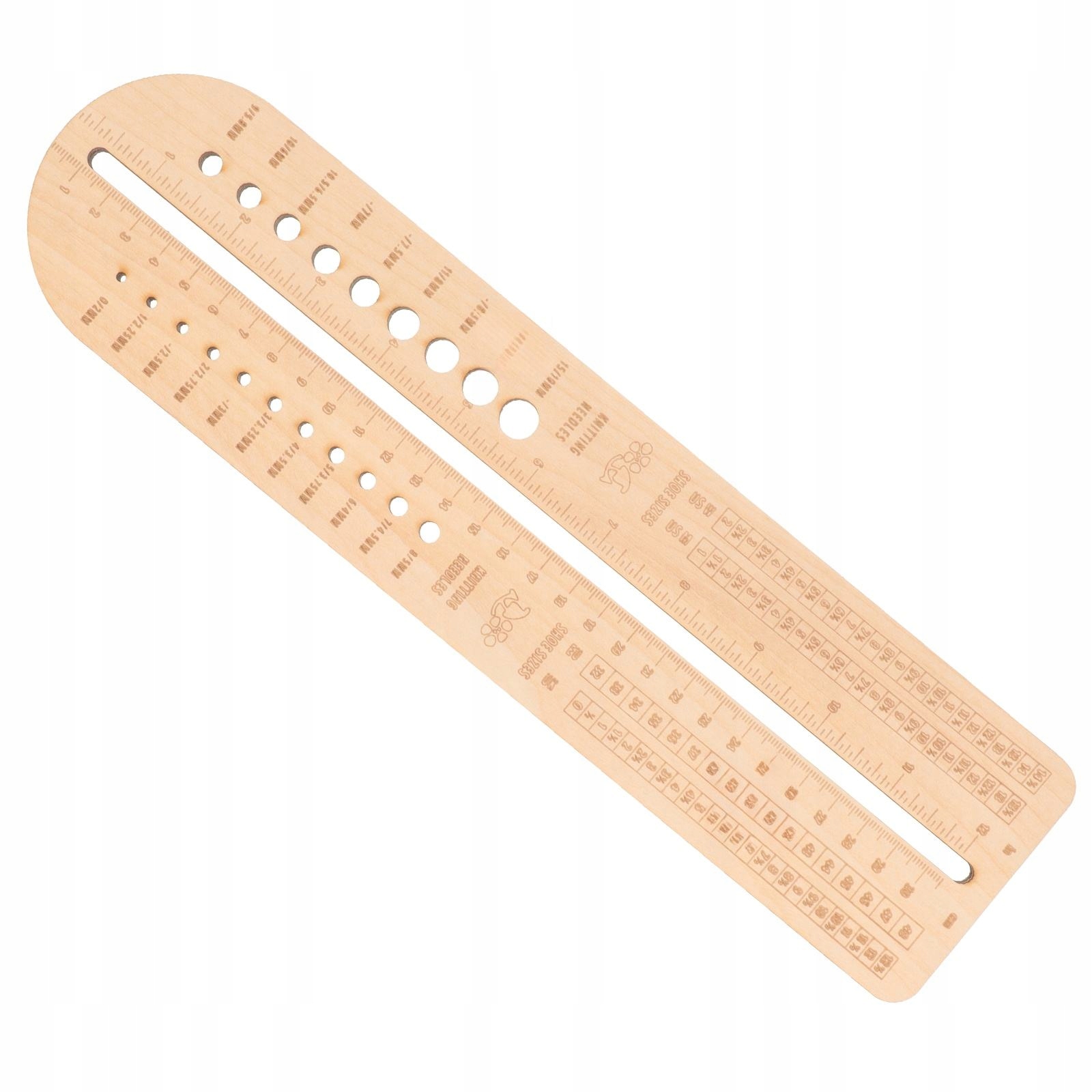 Деревянный фиксатор носков и калибр для вязальной спицы. Бежевая линейка