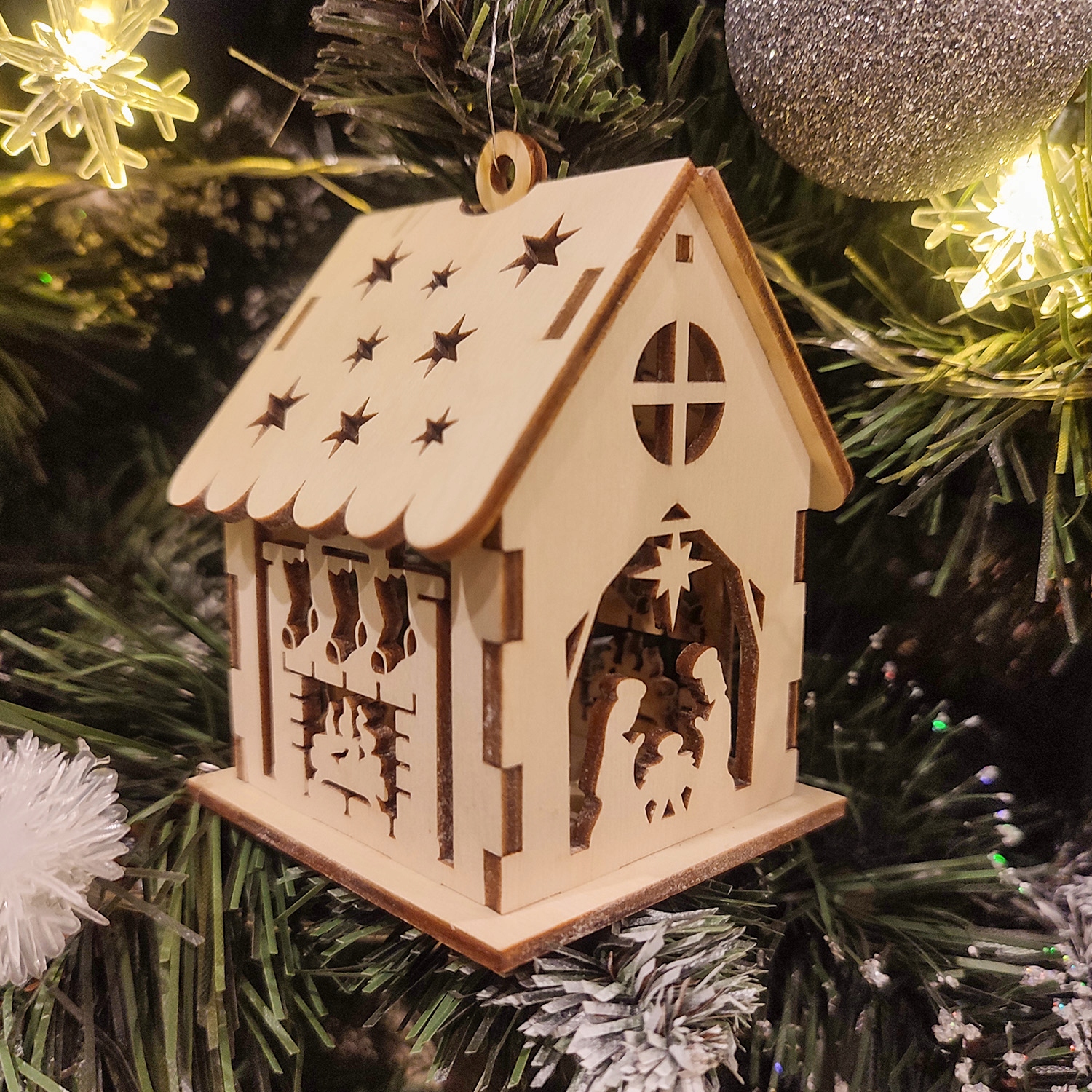 ДЕРЕВ'ЯНИЙ БУДИНОК 3D МІНІ ЯЛИНКА ПІДВІСНІ ЯЛИЧКОВІ ПРИКРАСИ