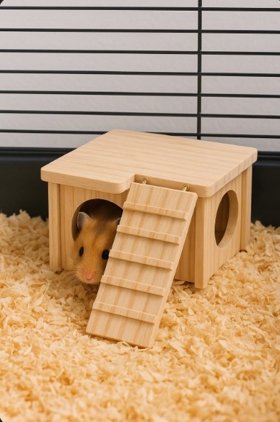 Дом из натурального дерева с пандусом — идеальное убежище и место для игр мелких грызунов, таких как хомяки, мыши и морские свинки. Изготовленный из необработанной сосновой древесины, он обеспечивает животному безопасную и здоровую среду - без химикатов, клеев и лаков.