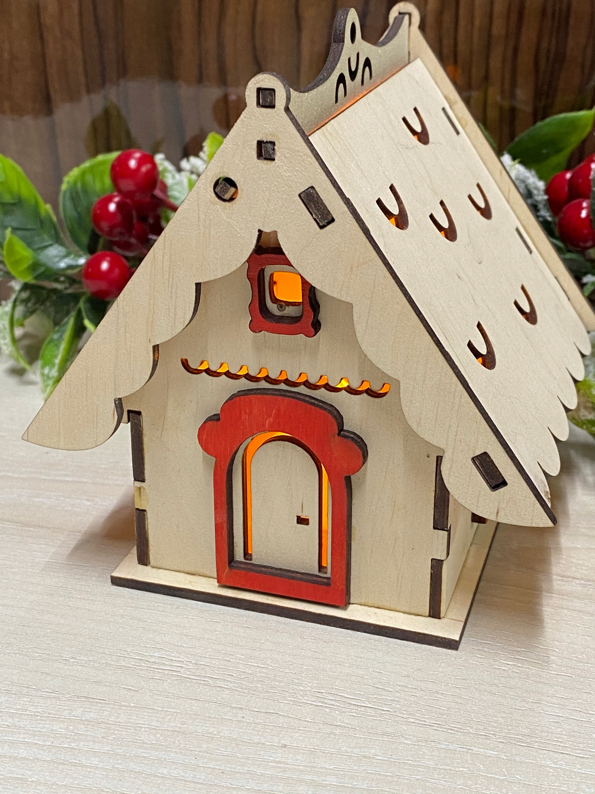 Деревянный дом подсвечник светодиод