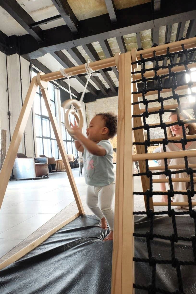 Вот набор, предназначенный для деятельности и радости детей в возрасте от 1,5 до 11. Он состоит из нескольких элементов, которые благоприятствуют игре, упражнениям и развитию физической подготовки. Первый элемент - это деревянная пирамида, оснащенная лестницей и струнной сеткой. Это творческий дизайн, который побуждает детей подниматься, улучшая их моторную координацию и развивая моторные навыки. Вторым важным элементом является гимнастический матрас, который является не только дополнительным комфортом, но и, прежде всего, во время упражнений. Матрас обеспечивает безопасные условия во время деятельности, возможное смягчение падений и защита от травм. Кроме того, набор может содержать различные гимнастические аксессуары, адаптированные к выбранному набору. Стоит отметить, что этот набор предназначен для детей с 1,5 до 11 лет, и максимальная нагрузка зависит от элементов: 90 кг для игровой площадки и 40 кг для аксессуаров.