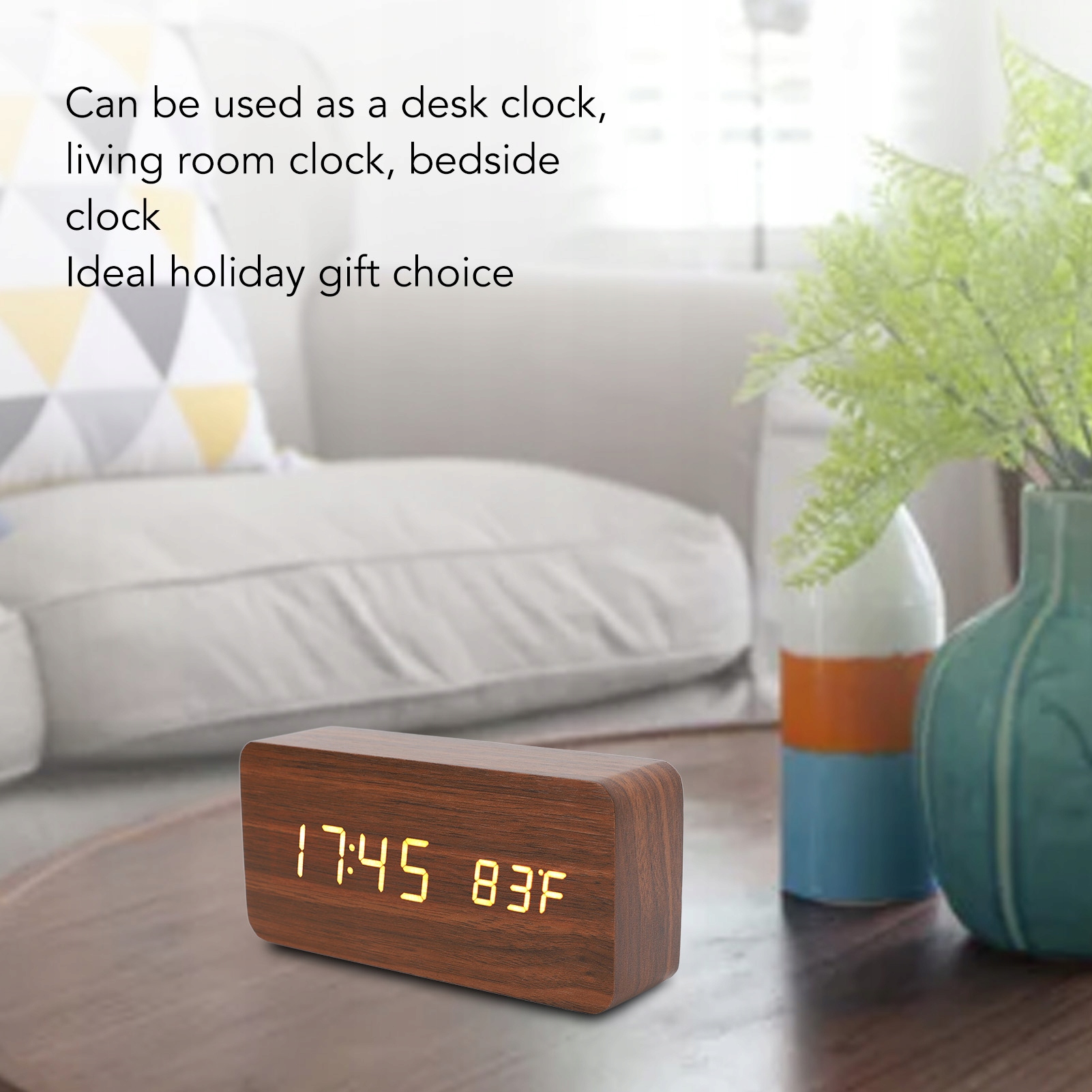 Этот деревянный цифровой будильник с простым и текстурированным дизайном также можно использовать в качестве украшения для различные комнаты, подходящие для спальни, гостиной, офиса и т. д.