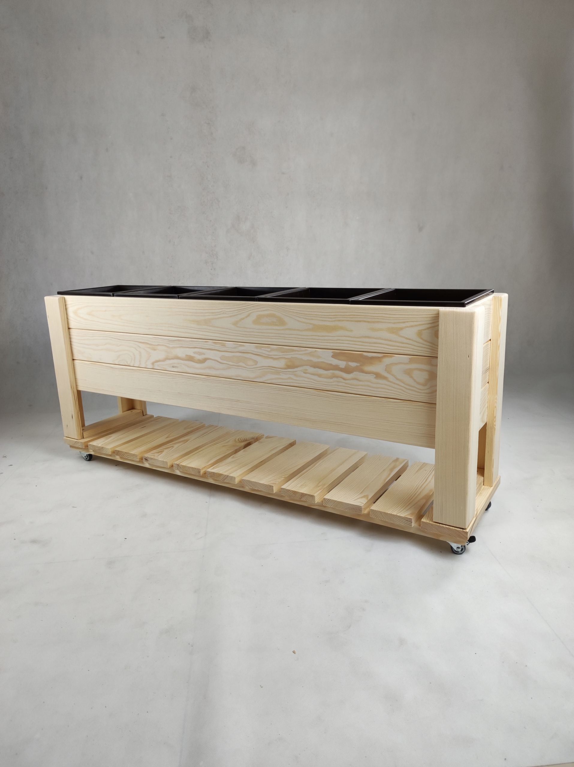 горшок оснащен 5 вставки пластика с размерами ок. 23x23x20 см.