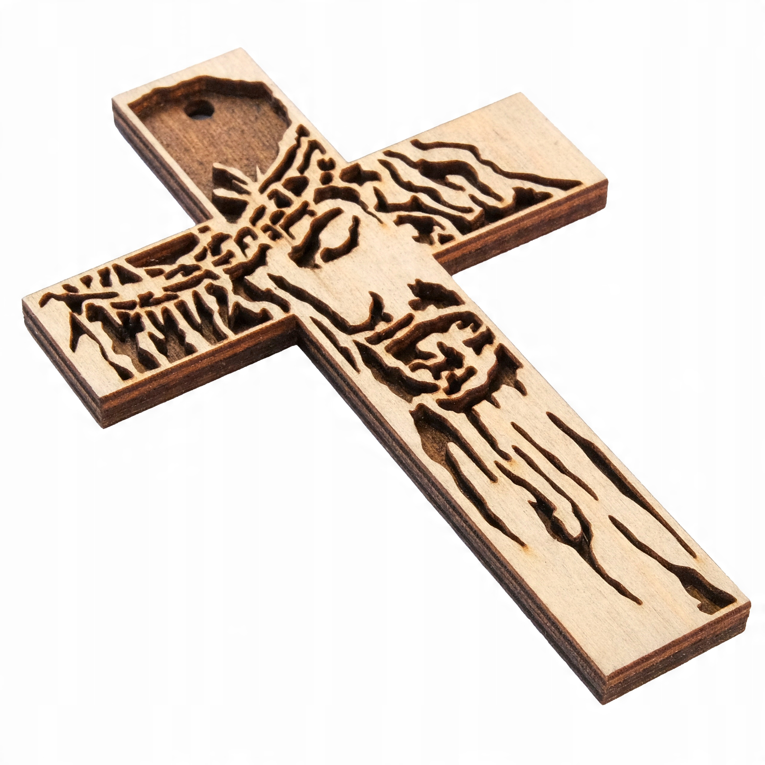 Дерев'яний хрест 12 см Лик Ісуса-мученика