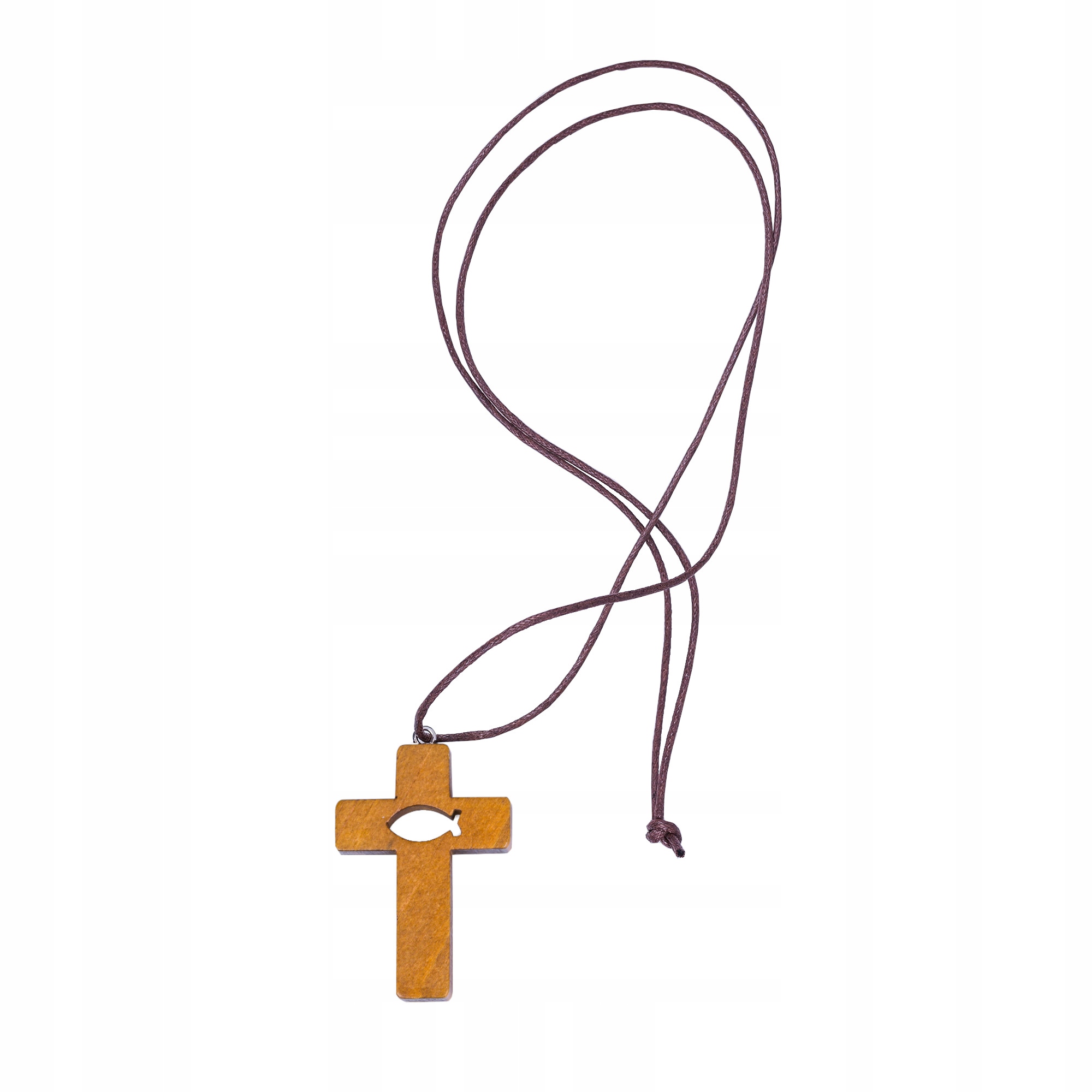 Деревянный КРЕСТ с шейным ремешком - рыба Ихтис