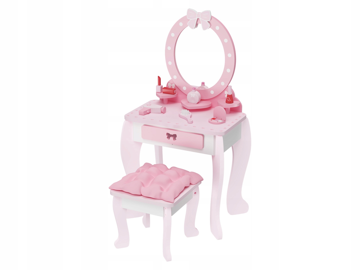 Деревянный туалетный столик для детей, играя с большим зеркалом, табуретом и аксессуарами h2>