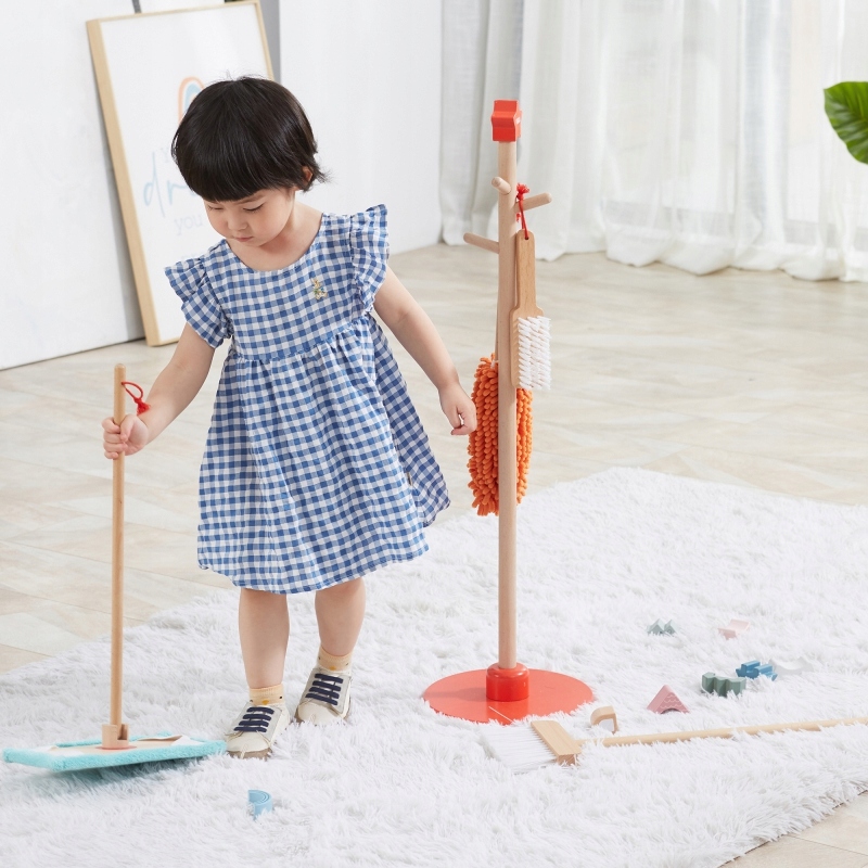 - Очистка обычно связана с детьми довольно негативно, как плохая обязанность или скучная и утомительная занятия. Комплект для очистки представляет собой аксессуары, адаптированные к небольшим помощникам, как размеру, так и тяжелости. Предметы можно легко хранить, используя стойку с красной базой, где их можно повесить. Благодаря набору для уборки, ребенок узнает, как использовать отдельные предметы. Малыш научится заботиться о порядке и чистоте в своей комнате