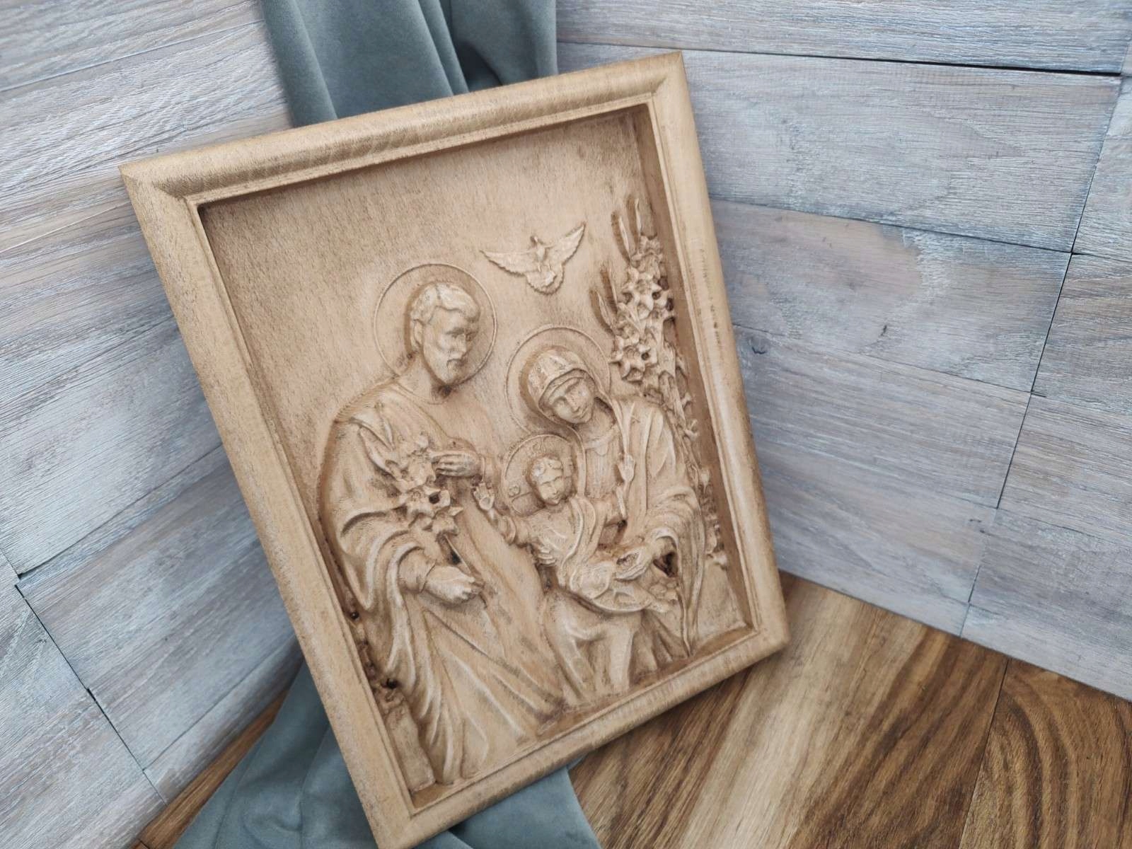 Деревянный барельеф Картина "Святое Семейство III", подарок на годовщину свадьбы, 30 см