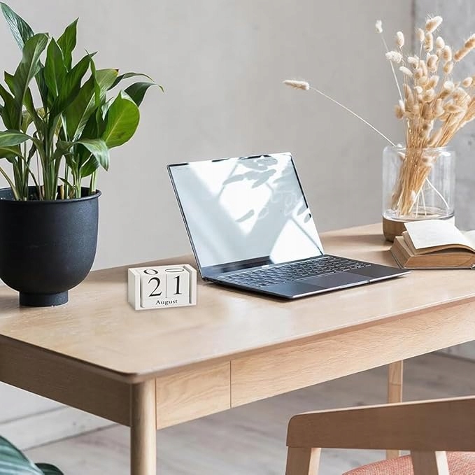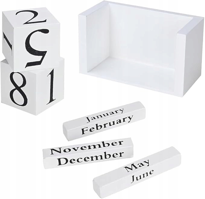 Introduce a bit of elegance and order to your desk with the reusable wooden cube calendar. Это практичное и красивое украшение, которое подойдет как дома, так и в офисе. Just rearrange the cubes with numbers and month names to enjoy the current date every day - no cards, no waste, no need to buy a new calendar every year.