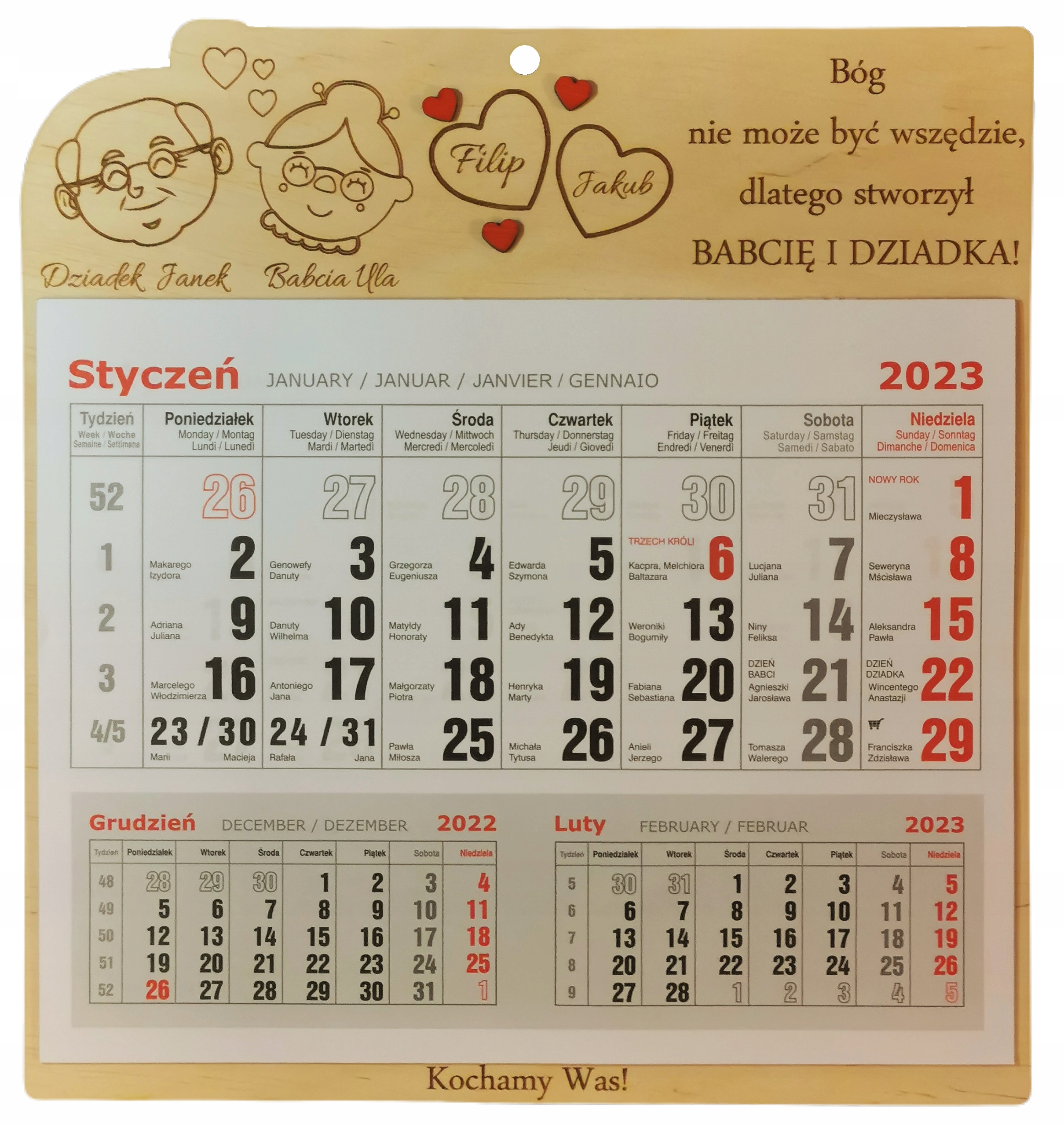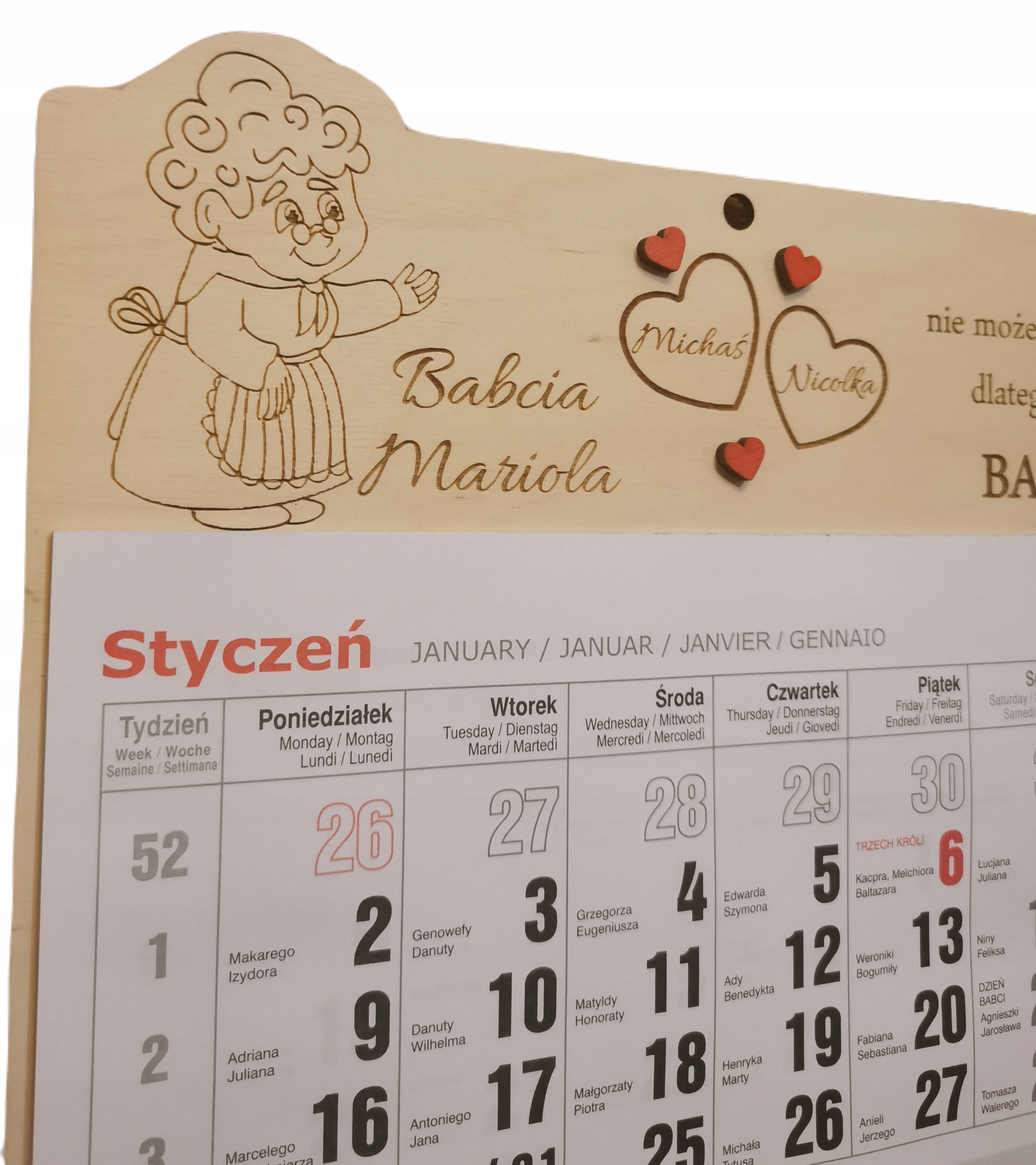 ДЕРЕВ'ЯНИЙ КАЛЕНДАР З ГРАВІРОВОЮ ДЛЯ БАБУСИ І БАБУСИ