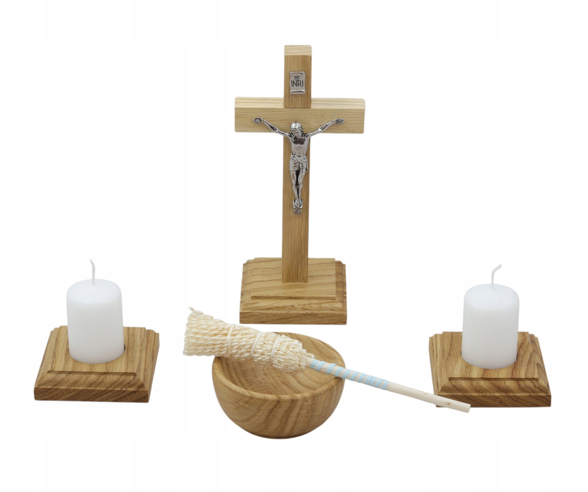 Drewniany zestaw kolędowy 7-elementów dębowy komplet krzyż kolęda pasyjka