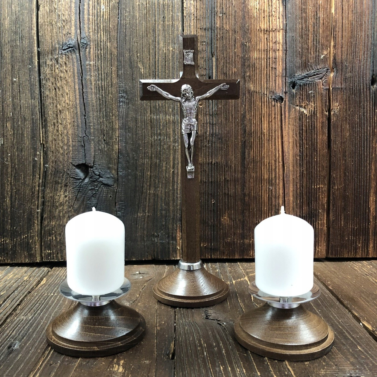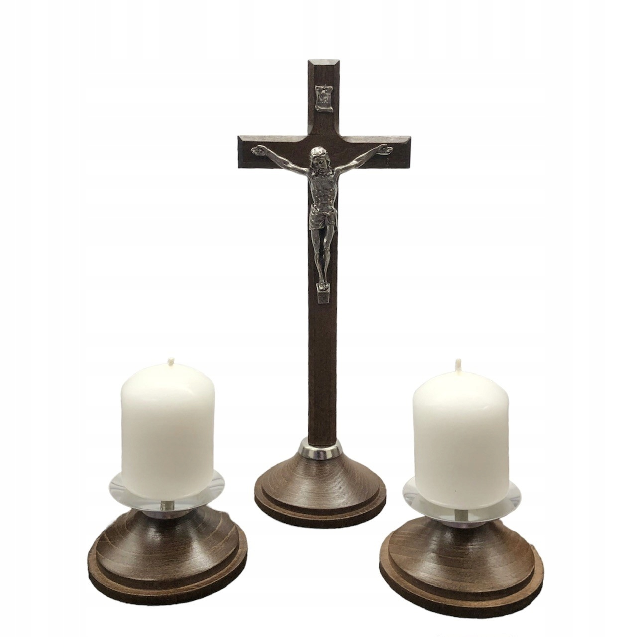 В комплект входят: крест, 2 подсвечника, 2 свечи, упакованные в элегантную коробку.