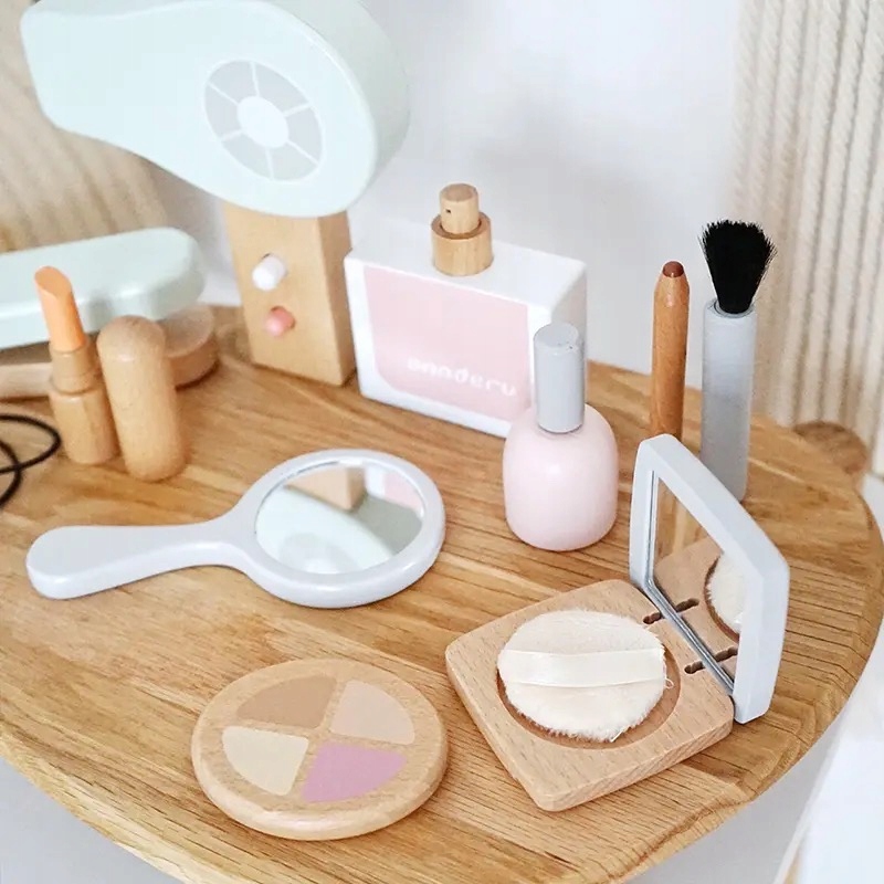 Деревянный косметический набор позволит вашему ребенку имитировать занятия для взрослых, которые будут развивать их вручную.