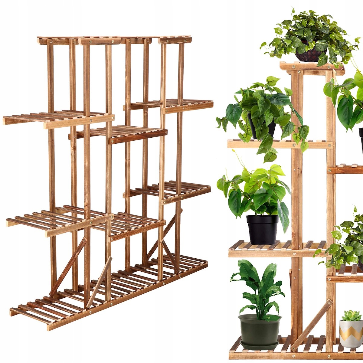 Многоуровневая клумба от бренда Springos – чрезвычайно практичное и эффективное решение для любителей растений. кто все еще ищет новые идеи для демонстрации цветов и для тех, кому не хватает места для горшков. Деревянная подставка, вмещающая до 15 горшков, позволит вам заполнить пустые углы зеленью и максимально эффективно использовать пространство в таких местах, как:
