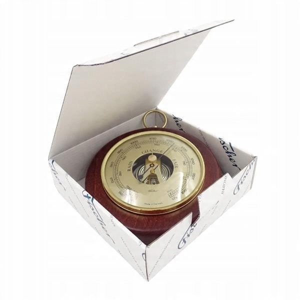 Красивый барометр Фишера с видимым механизмом. Классический барометр с видимым механизмом. Устройство установлено в латунном раме. Деревянная база. Имена на английском. Приложение: для использования в помещении. Диаметр: 14 см. Инструментальный диаметр диска: 10 см. Материал: латунь, нержавеющая сталь, дерево. Точность измерения барометра: ± 3 гПа. Цвет деревянного жилья - красное дерево. Жилье сделано из букового дерева. Хорошо известно, что чем выше уровня моря, тем ниже давление. Чем выше давление, тем меньше переменная погода. При давлении выше 1020 мбар мы можем ожидать сухого, веселого дня. Летом это будет просто хорошая погода, зимой день, вероятно, морозный (хотя с возможностью туманов). Давление в 1005 - 1020 мбар - это переменная погода. Моменты осветления могут быть переплетены с мимолетным дождем. При давлении ниже 1000 мбар небо будет покрыто облаками, и мы можем ожидать дождя. Увеличение повышения давления означает улучшение, и наоборот, его уменьшение - это ухудшение погоды. Лето, внезапные, прозрачные прыжки с давлением могут означать сильные штормы. Барометр представляет собой очень точное устройство, измеряющее давление воздуха. Для этой цели он использует SO -названную вакуумную банку, чьи стены расширяются или узкие сотни миллиметров в зависимости от изменяющегося давления воздуха. Масштабирование барометра проводилось на фабрике. Однако, например, в результате сильных шоков, может потребоваться новое регулирование. Чтобы выполнить его, используйте отвертку и отрегулируйте винт на задней части устройства в соответствии с инструкциями прикрепленных инструкций.