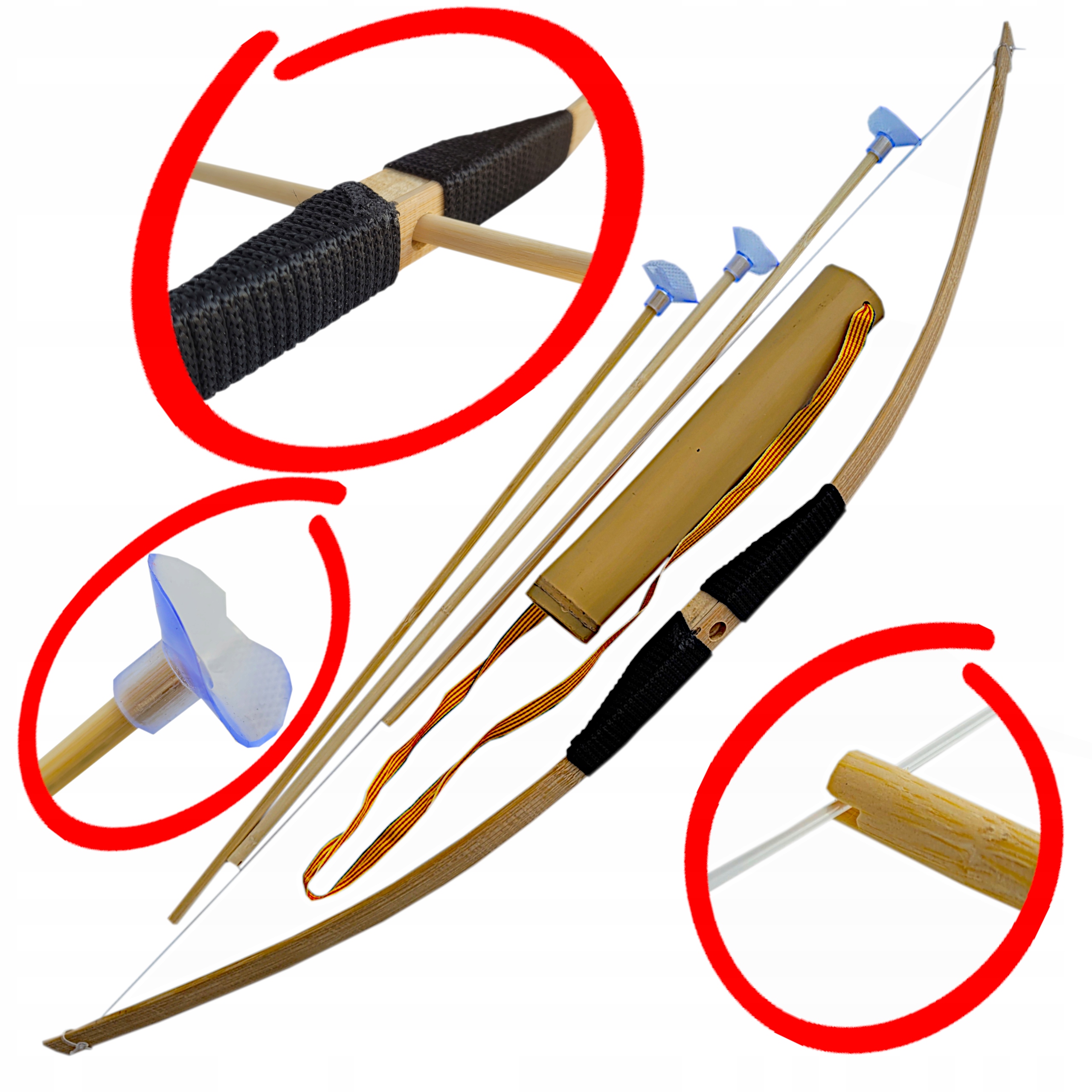 ⭐ В комплект входят ТРИ длинные стрелы длиной 40,5 см. Колчан из толстого бамбука крури имеет удобный плечевой ремень для переноски.