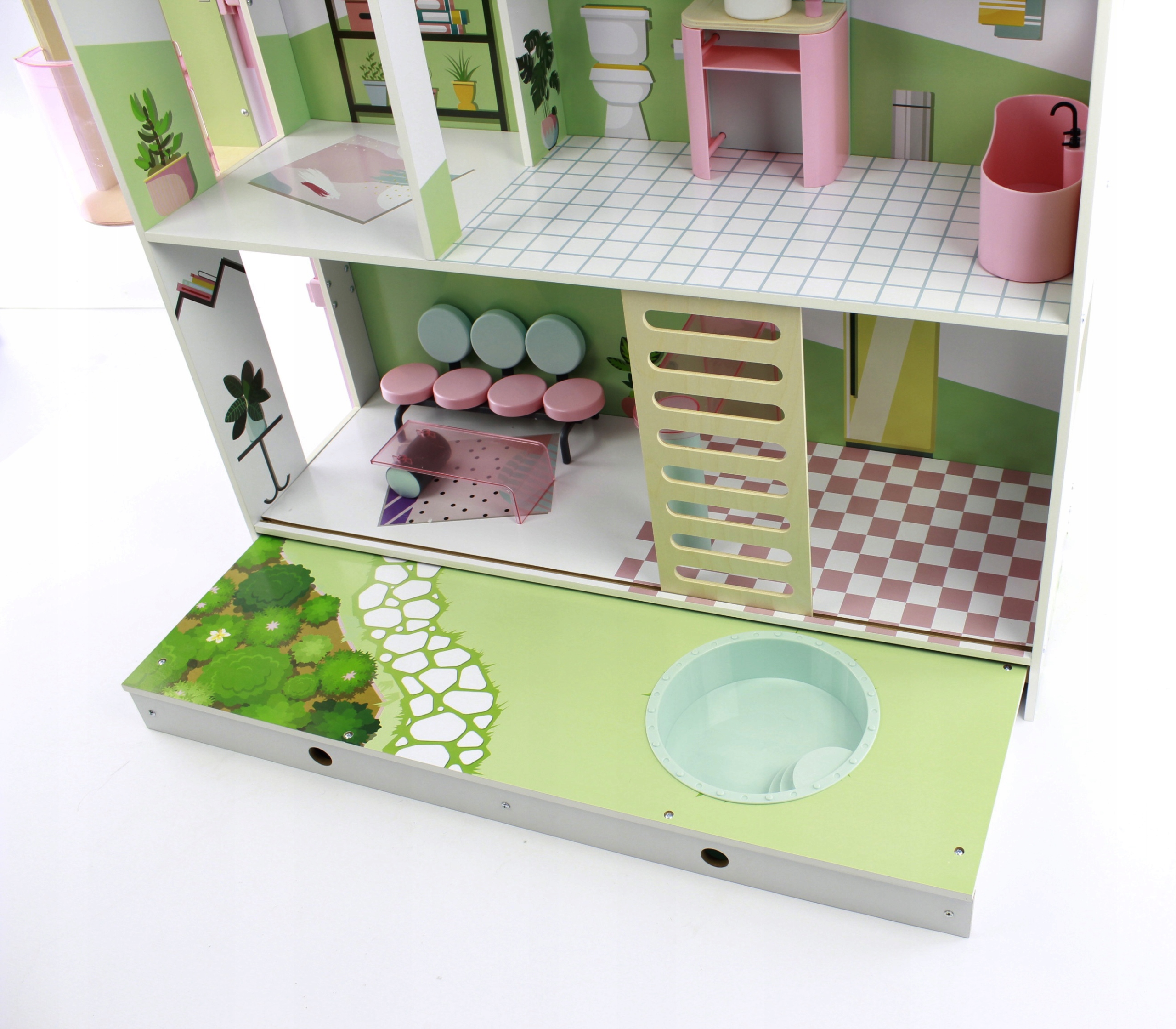Кукольный домик с передвижным лифтом, террасой, бассейном