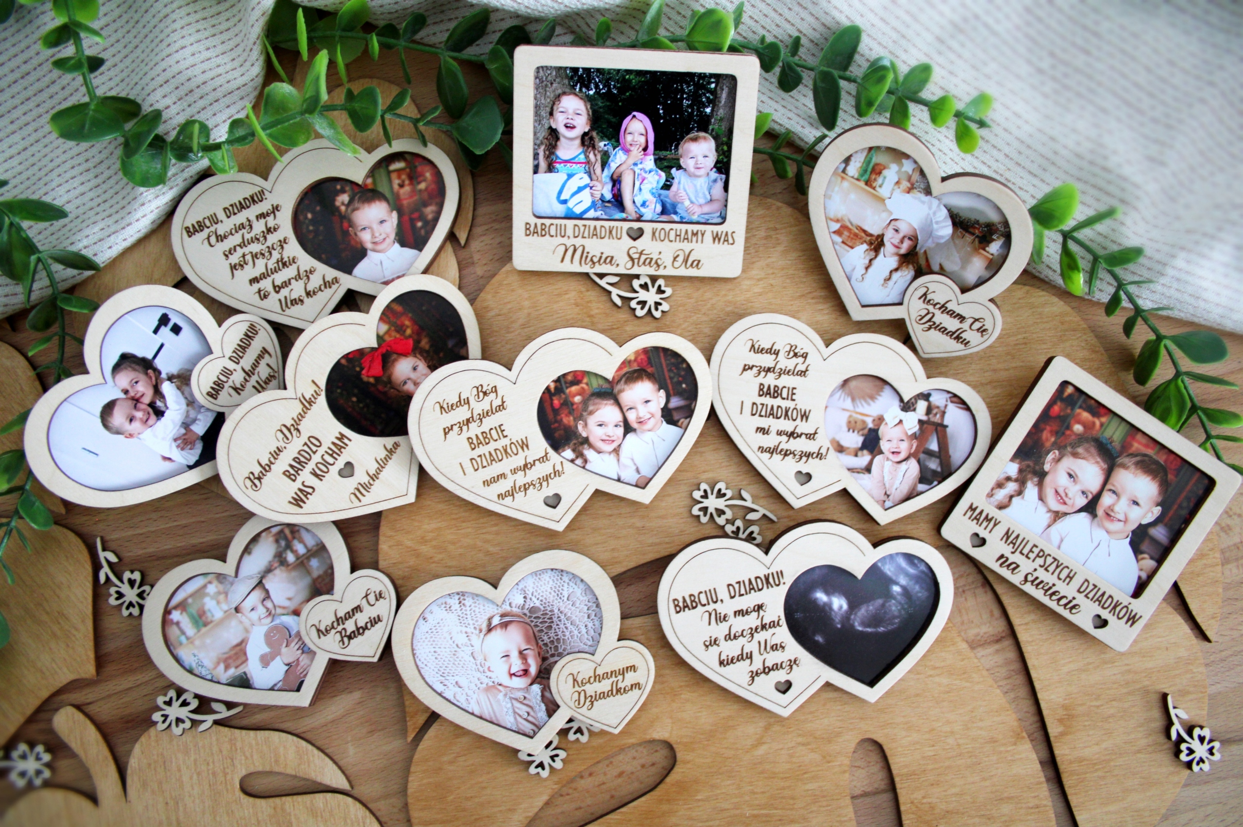 Деревянный магнит с фотографией и поздравлением в подарок бабушке и дедушке. Магнит готов для вручения - упакован в целлофановый пакет с лентой.