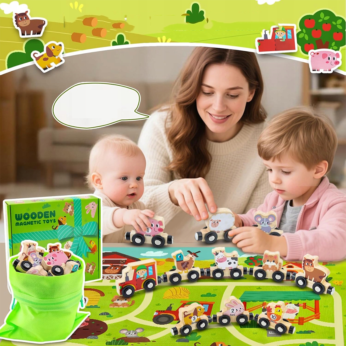 Этот набор деревянных поездов для сельскохозяйственных животных предназначен для мальчиков и девочек в возрасте 1, 2 и 3 лет. Эффективно развивает зрительно-моторную координацию, численное мышление и распознавание сельскохозяйственных животных, а также мелкую моторику. Дети могут легко соединять вагончики с помощью магнитов, свободно комбинируя своих любимых животных, цифры и цвета, что делает обучение очень увлекательным.