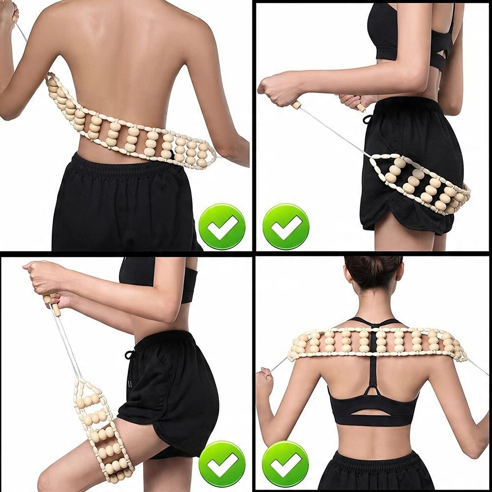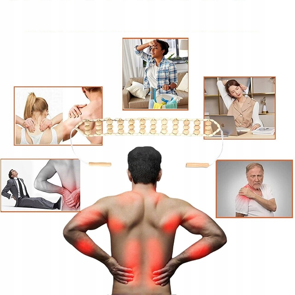 Ручной полированный деревянный валик для массажа с 36 большими деревянными массажными бусинами, которые могут глубоко массировать болезненные части всего тела.