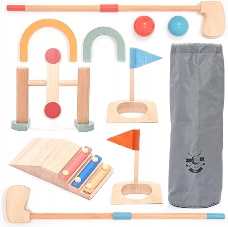 ДЕРЕВЯННЫЙ ДЕТСКИЙ МИНИ-ГОЛЬФ ДЛЯ ДОМА И САДА С БАНКАМИ И ШАРИКАМИ