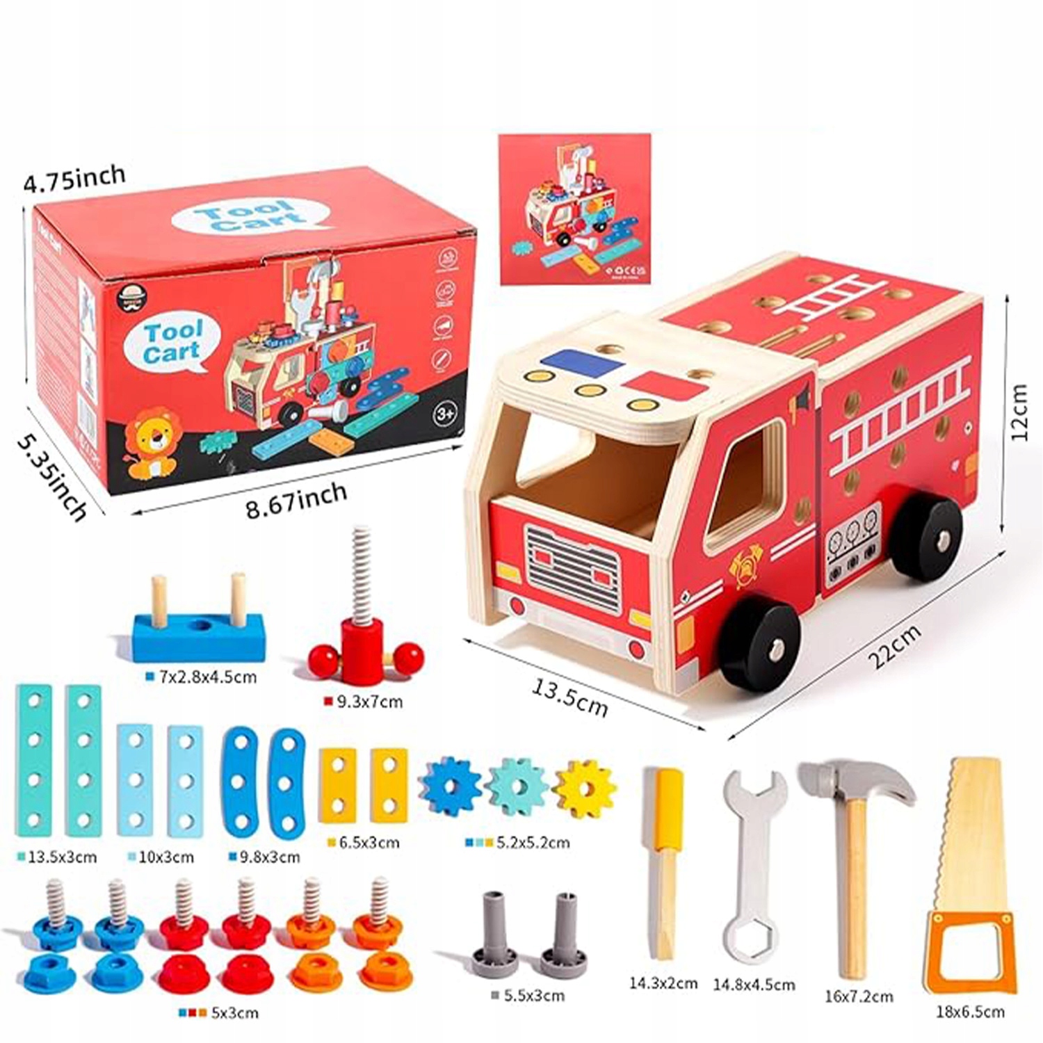 НАБОР ДЕРЕВЯННЫХ ИНСТРУМЕНТОВ НАБОР ДЕТСКОГО СУНДУК С ПОЖАРНОЙ МАШИНОЙ
