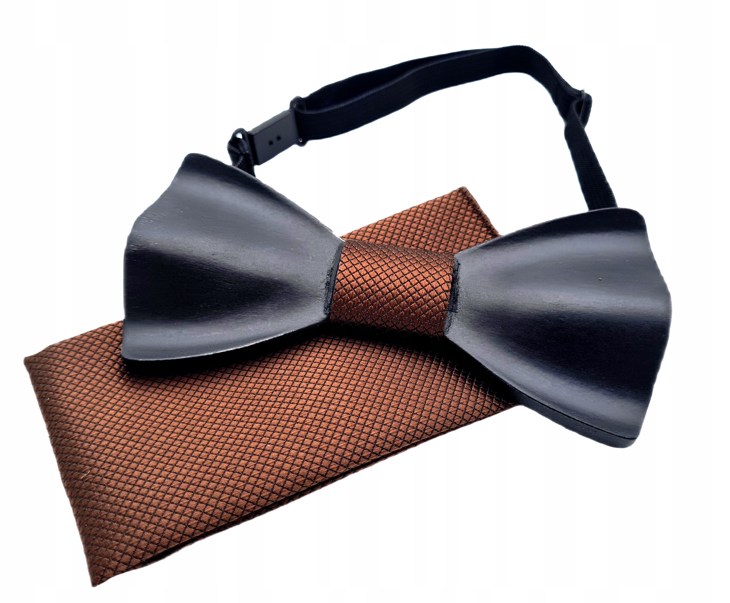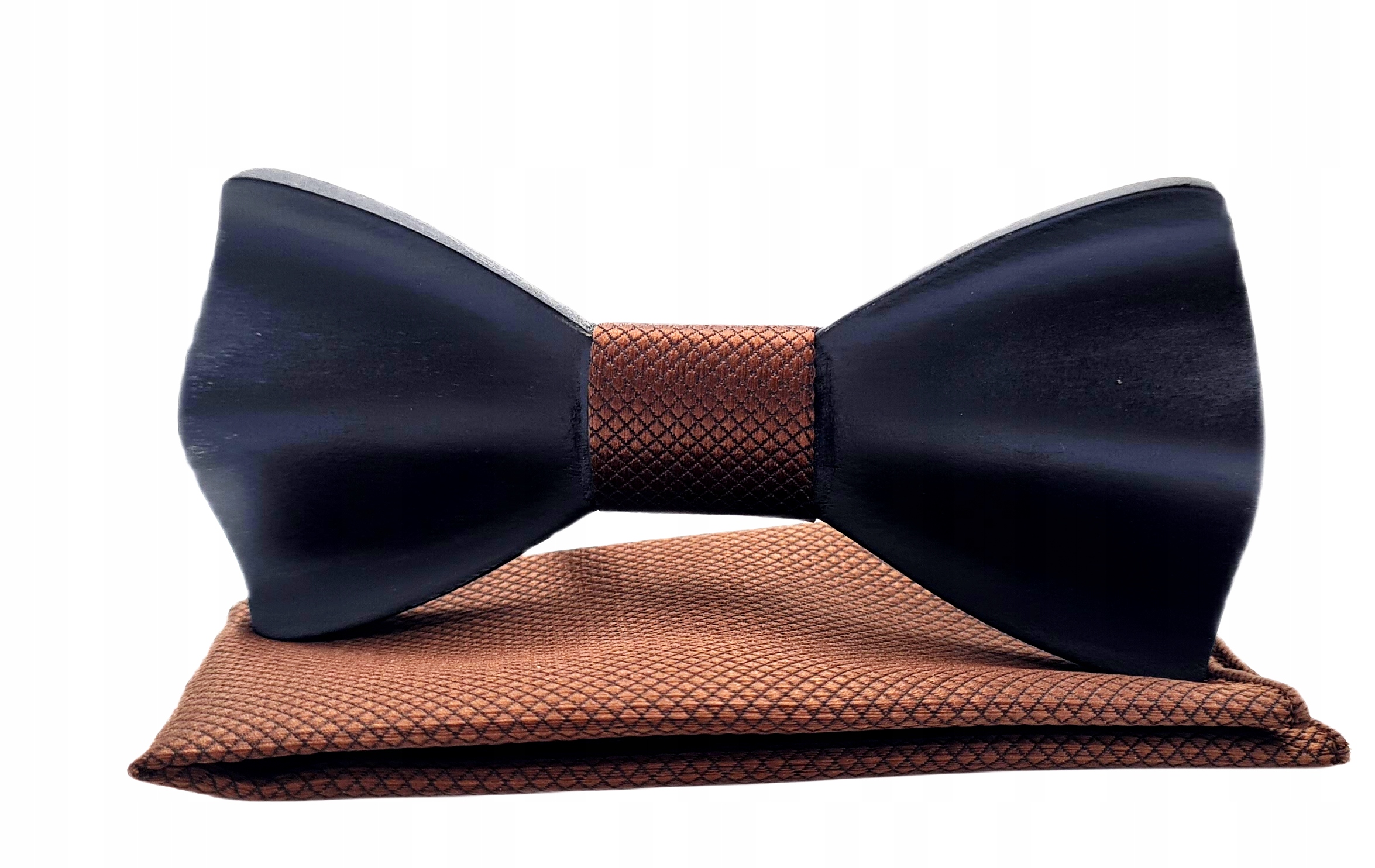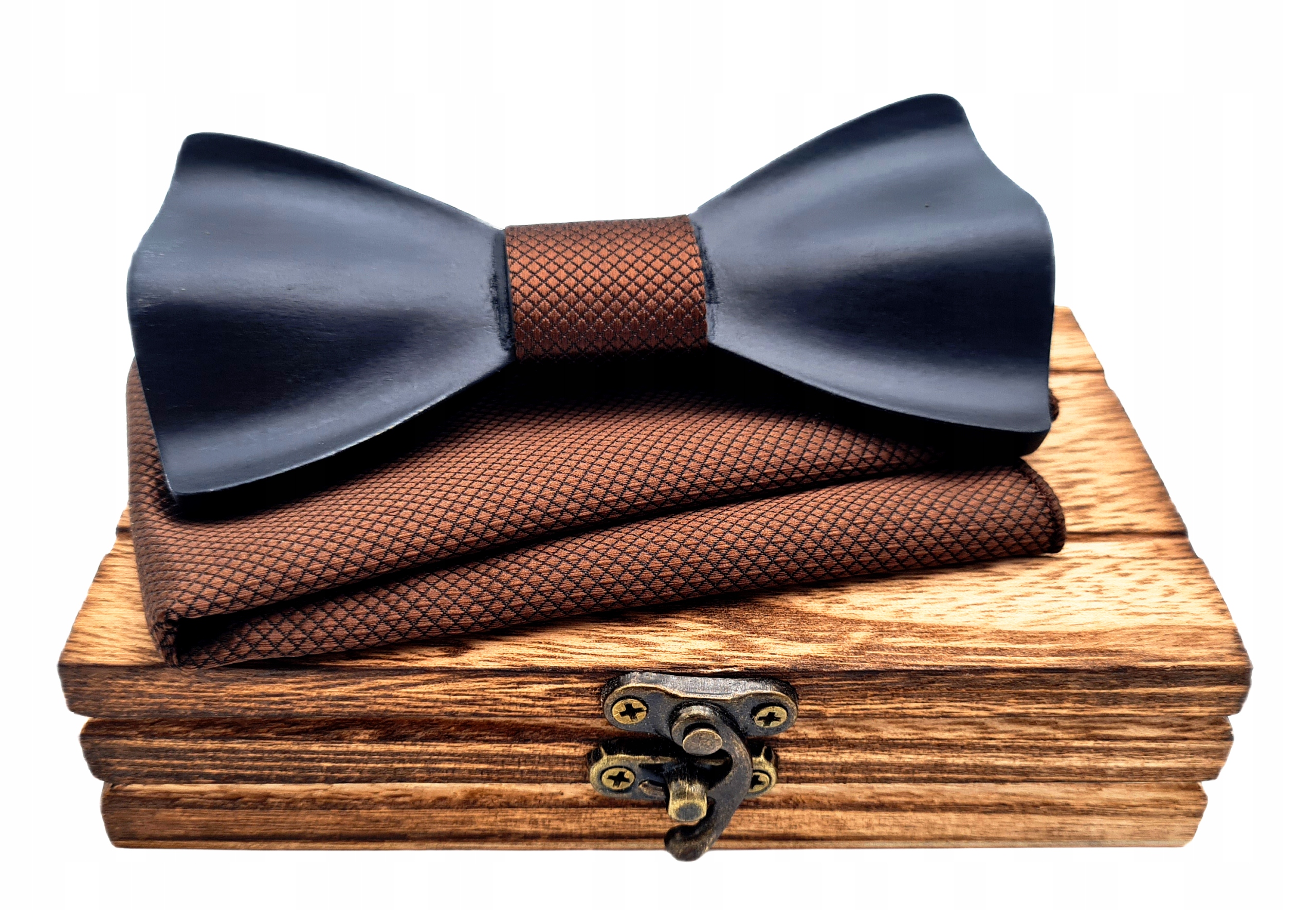 Черный деревянный галстук-бабочка и коричневый нагрудный платок