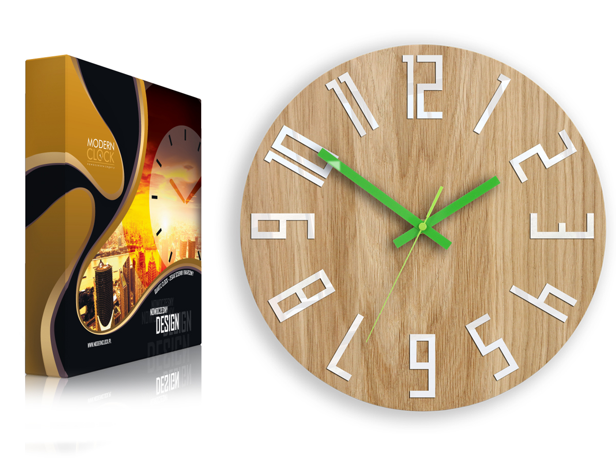 ДЕРЕВЯННЫЕ НАСТЕННЫЕ ЧАСЫ - ТОНКИЙ ДУБ С ЗЕЛЕНЫМИ СТРЕЛКАМИ -