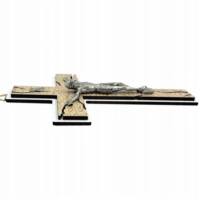 Легкий стилизованный крест из материала, напоминающего дерево. Крест изготовлен польским производителем деревянных религиозных предметов.