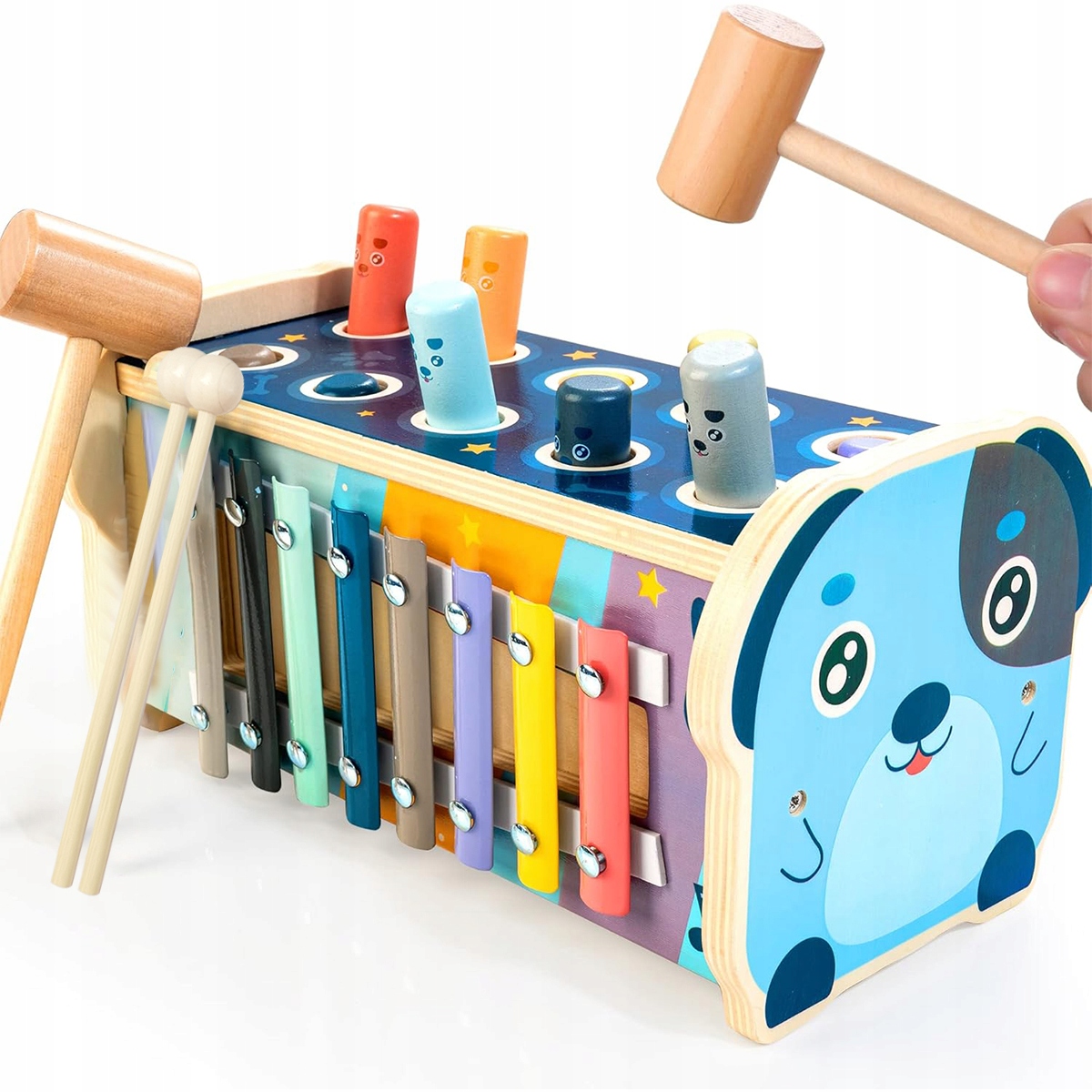 ⭐Игрушка для ковки молотком по Монтессори для детей от 1 года Деревянная доска для ковки и занятий с ксилофоном, лабиринтом с числами, скамейкой для ковки. Развивающая подарочная игрушка🌈