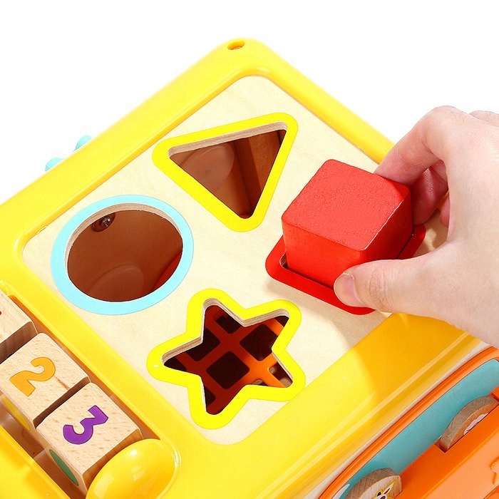 Деревянный развивающий кубик в виде автобуса, который займет ребенка на долгие часы! Благодаря тому, что кубик имеет разные стороны со множеством игр, наш ребенок будет с удовольствием с ним играть.