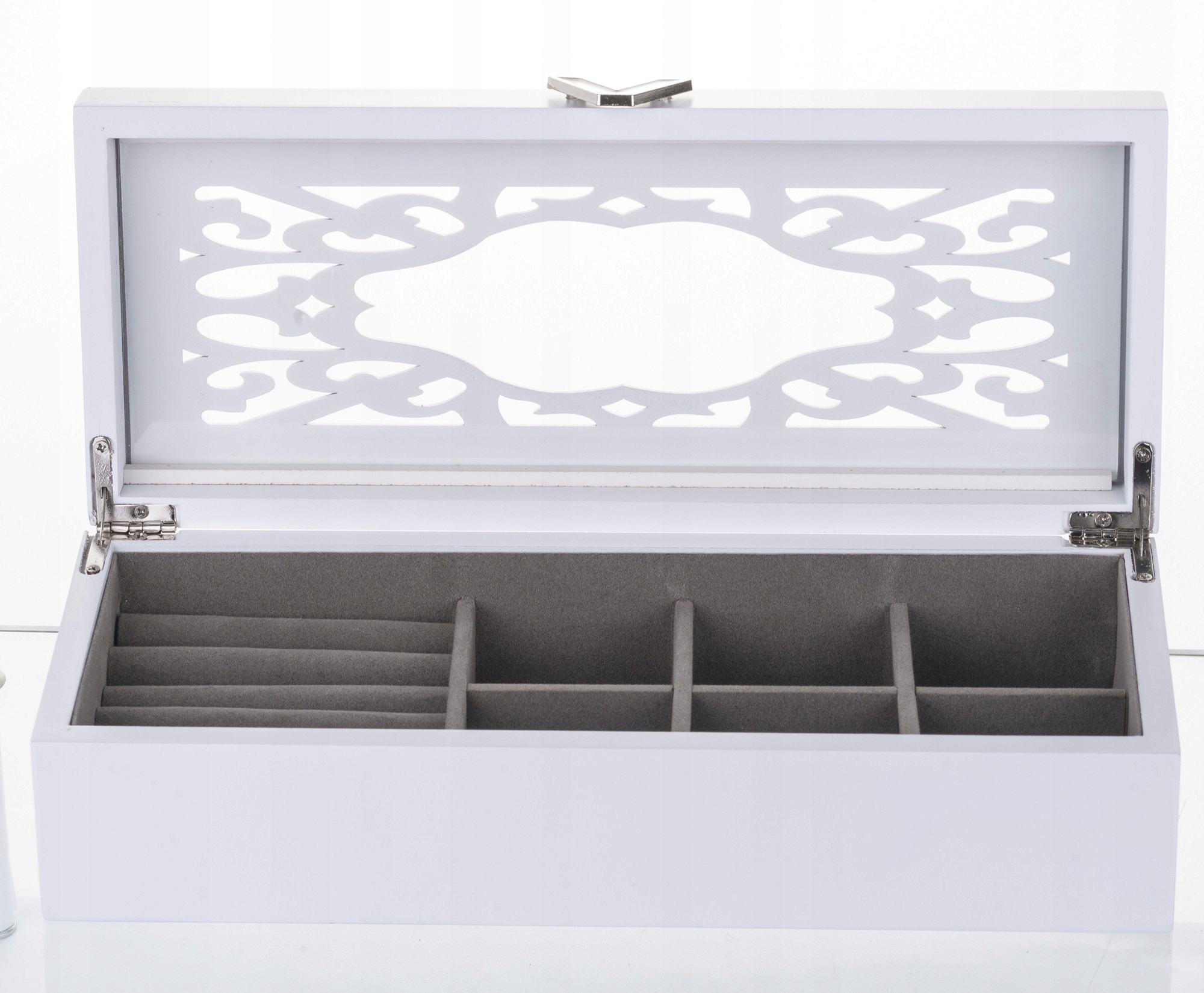 ДЕРЕВЯННАЯ ШКАТУЛКА ДЛЯ ЮВЕЛИРНЫХ УКРАШЕНИЙ, БЕЛЫЙ АЖУРНЫЙ ОРГАНАЙЗЕР ГЛАМУРНЫЙ ПОДАРОК