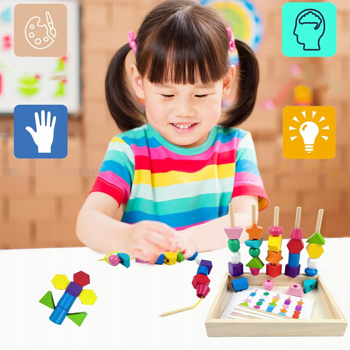 Деревянная головоломка для детей, сортировщик блоков Монтессори, бусины для нанизывания ниток
