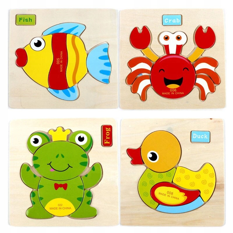 Милые деревянные пазлы с животными мотивами , транспортные средства, дома и т. д. Красивые цвета, приятная отделка. Пазлы развивают воображение ребенка, поддерживают координацию и мануальные навыки, позволяют познавать мир животных. Они доставят массу удовольствия маленьким собирателям пазлов :-)