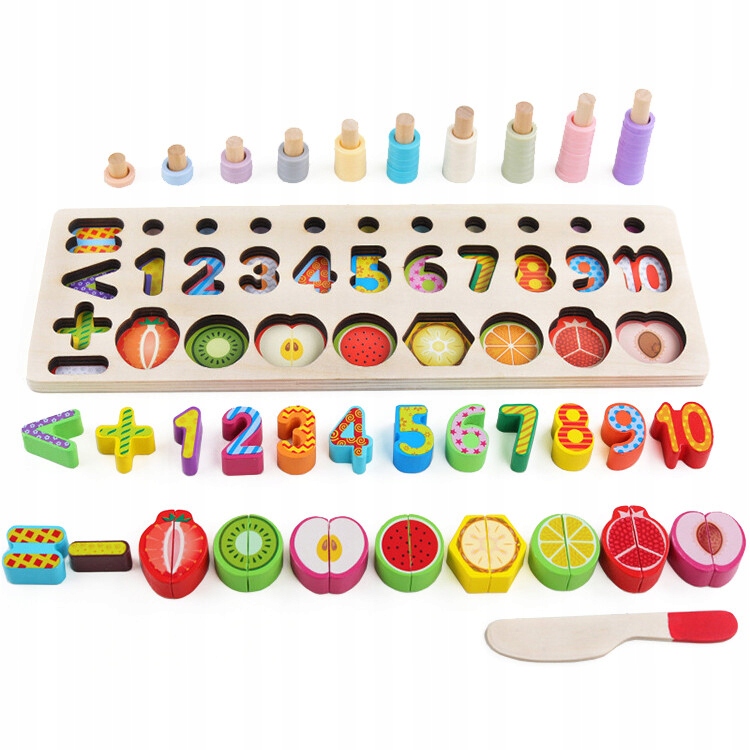 Богатый набор позволит вашему ребенку практиковать различные задачи, такие как сопоставление фигур, названий фруктов, изучение цветов. и числа, счет до десяти, основные математические операции. Игрушка развивает у ребенка моторику, воображение и логическое мышление.
