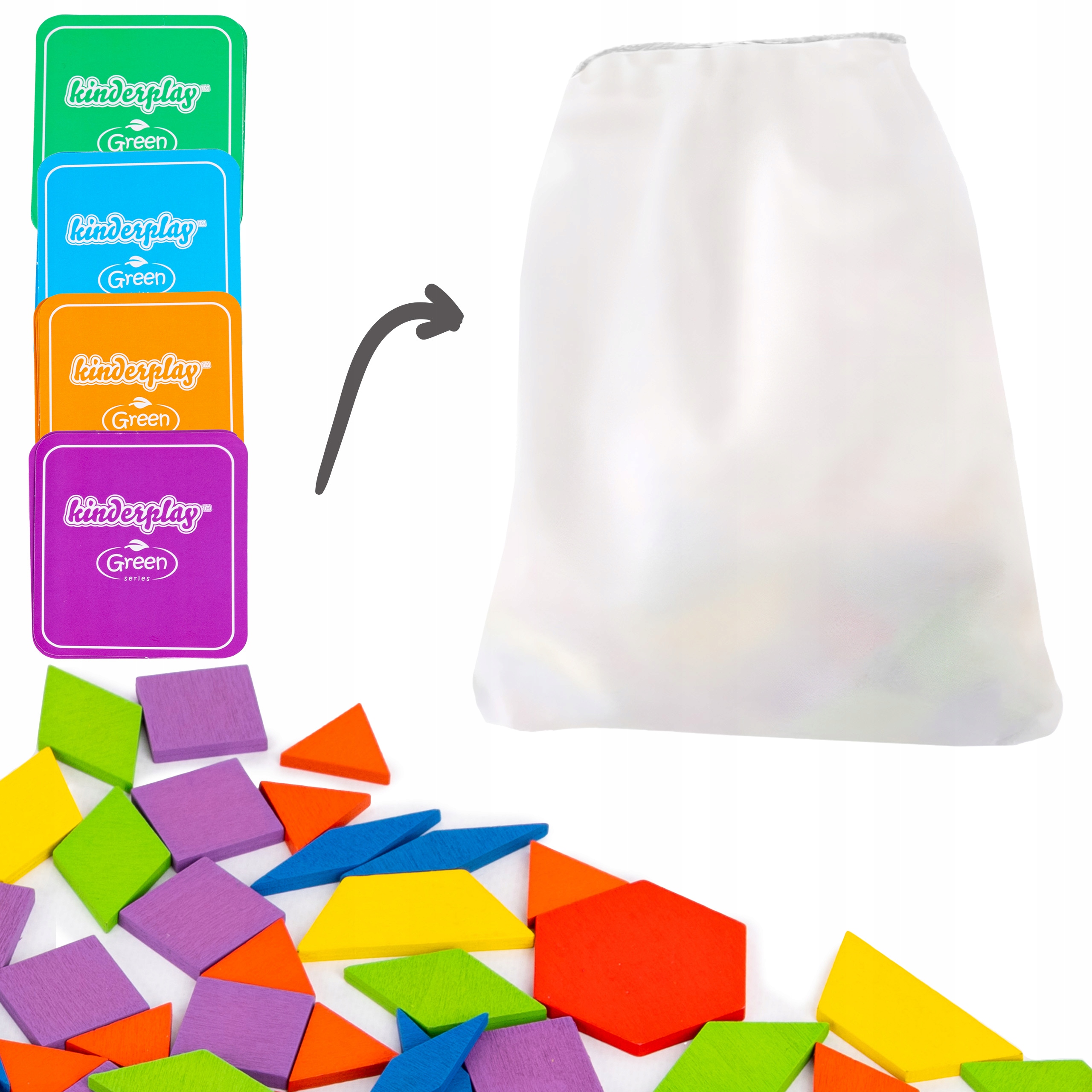В комплект также входит тканевый мешочек для деревянных пазлов и карточек, который облегчает хранение и транспортировку набора. Это делает игру еще более практичной и мобильной.