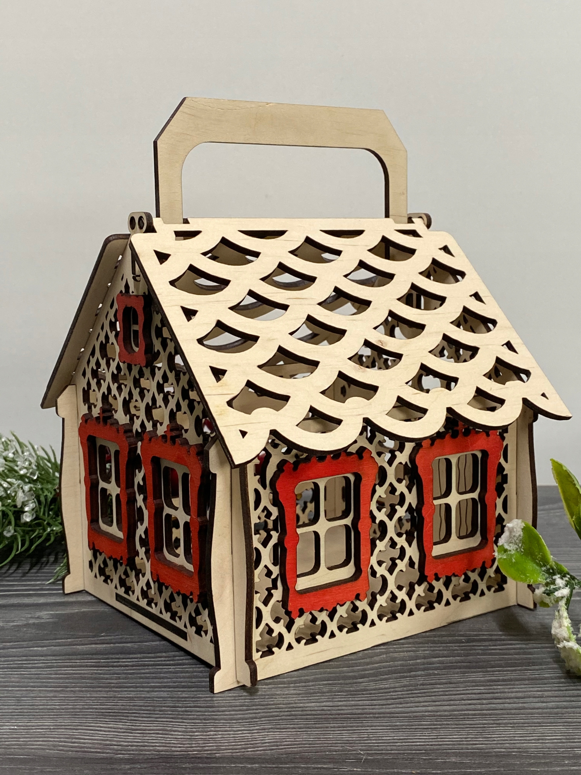 Деревянный дом подарок на рождественское украшение