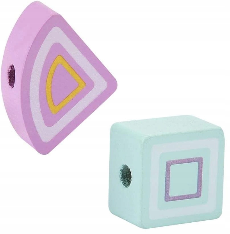 - В наборе 17 разноцветных кубиков различной формы и веревочки.
