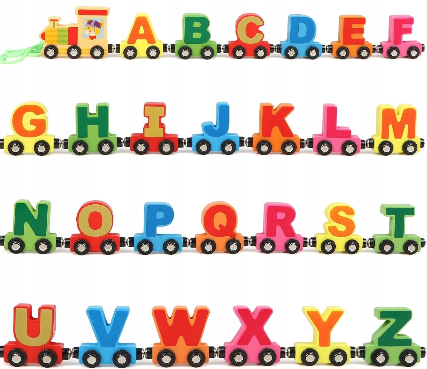 ДЕРЕВЯННЫЙ ПИСЬМЕННЫЙ ПОЕЗД НА МАГНИТЕ АЛФАВИТ