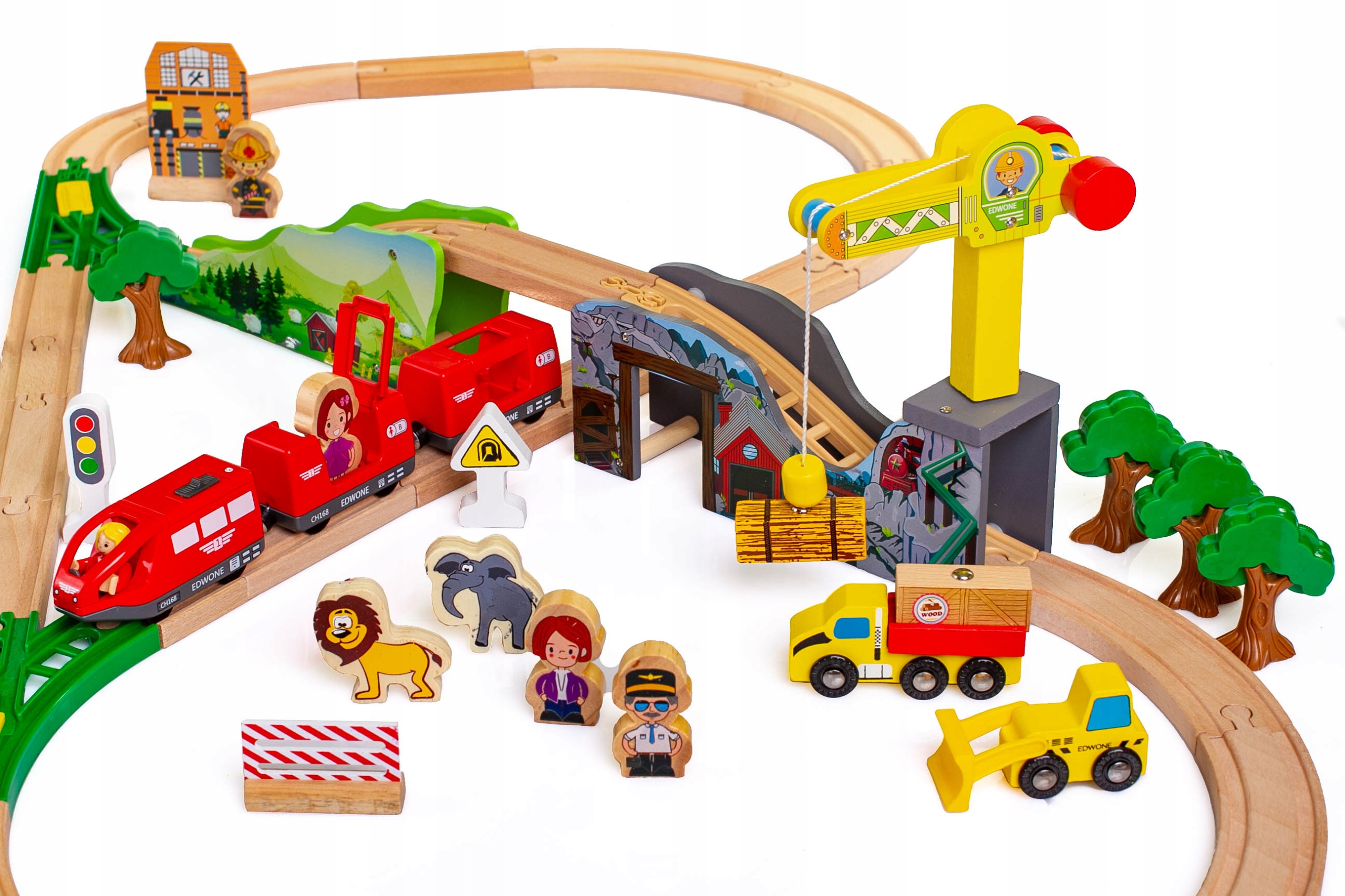 Откройте для себя обширный деревянный поезд с дополнительным локомотивом с дистанционным управлением, который подарит вашему ребенку еще больше радости, творчества и веселья.